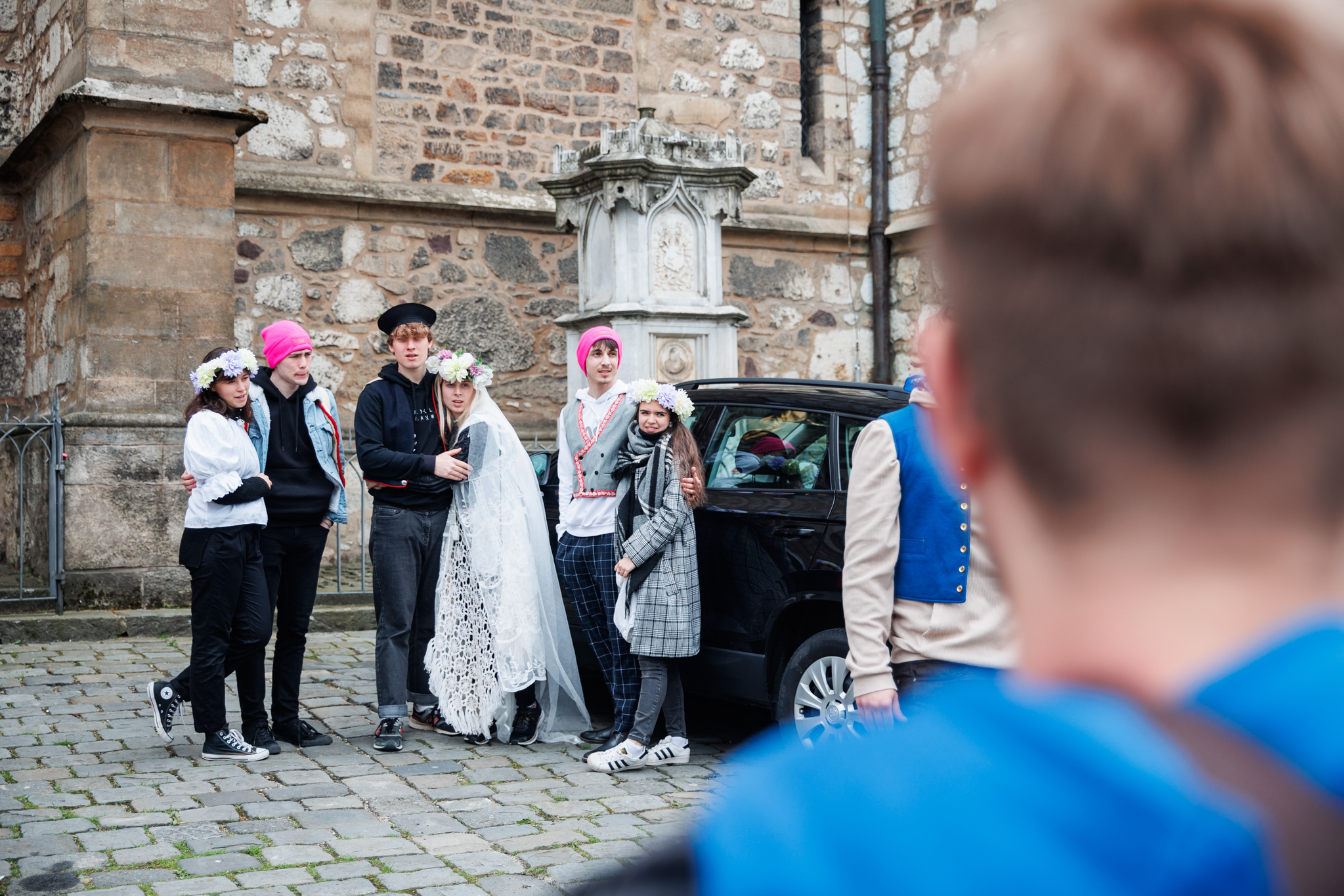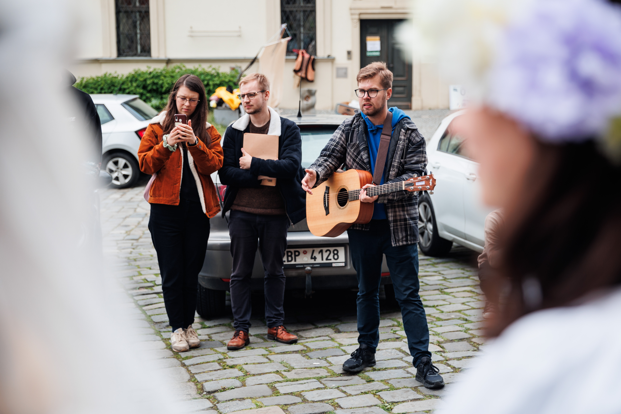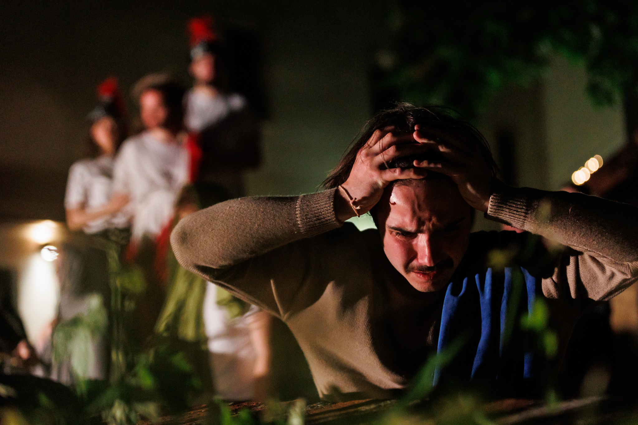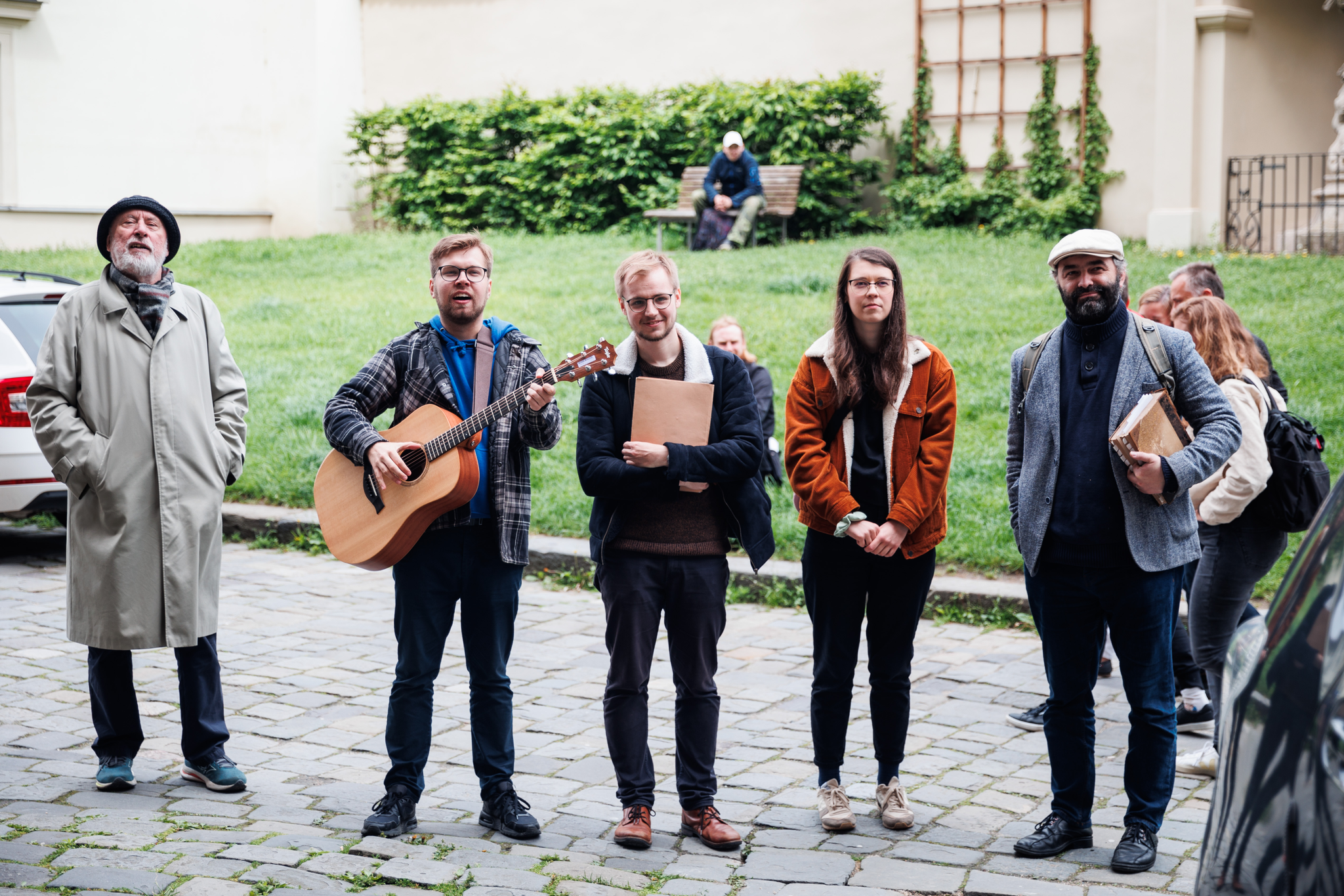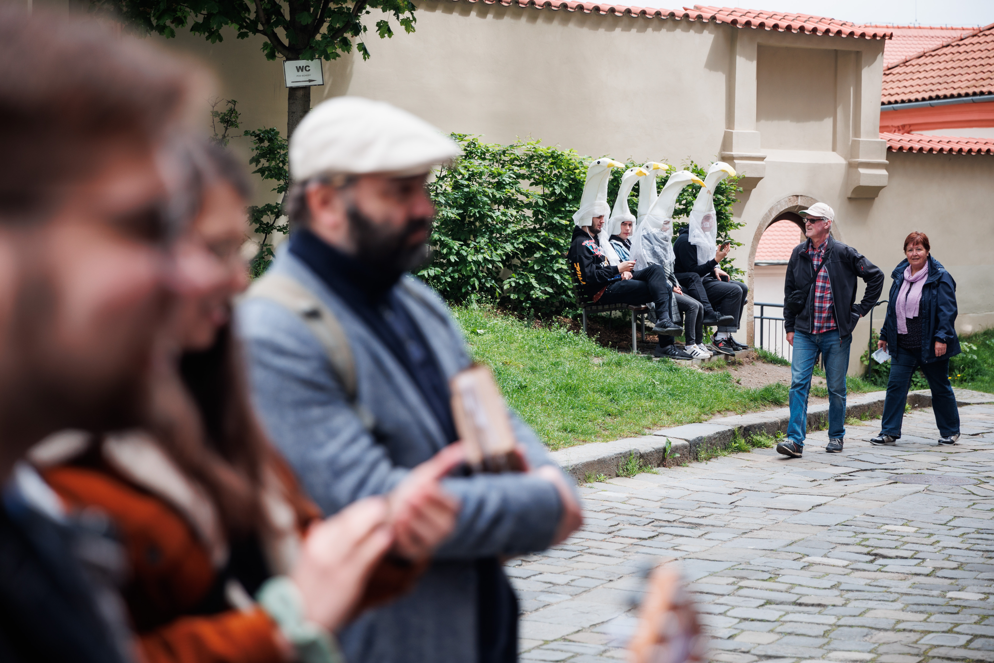 Pouliční divadlo studentů Divadelní fakulty JAMU okolo katedrály svatých Petra a Pavla 20. 5. 2023 v rámci Brněnské muzejní noci ve spolupráci s Diecézním muzeem na motivy biblických i lidových příběhů.