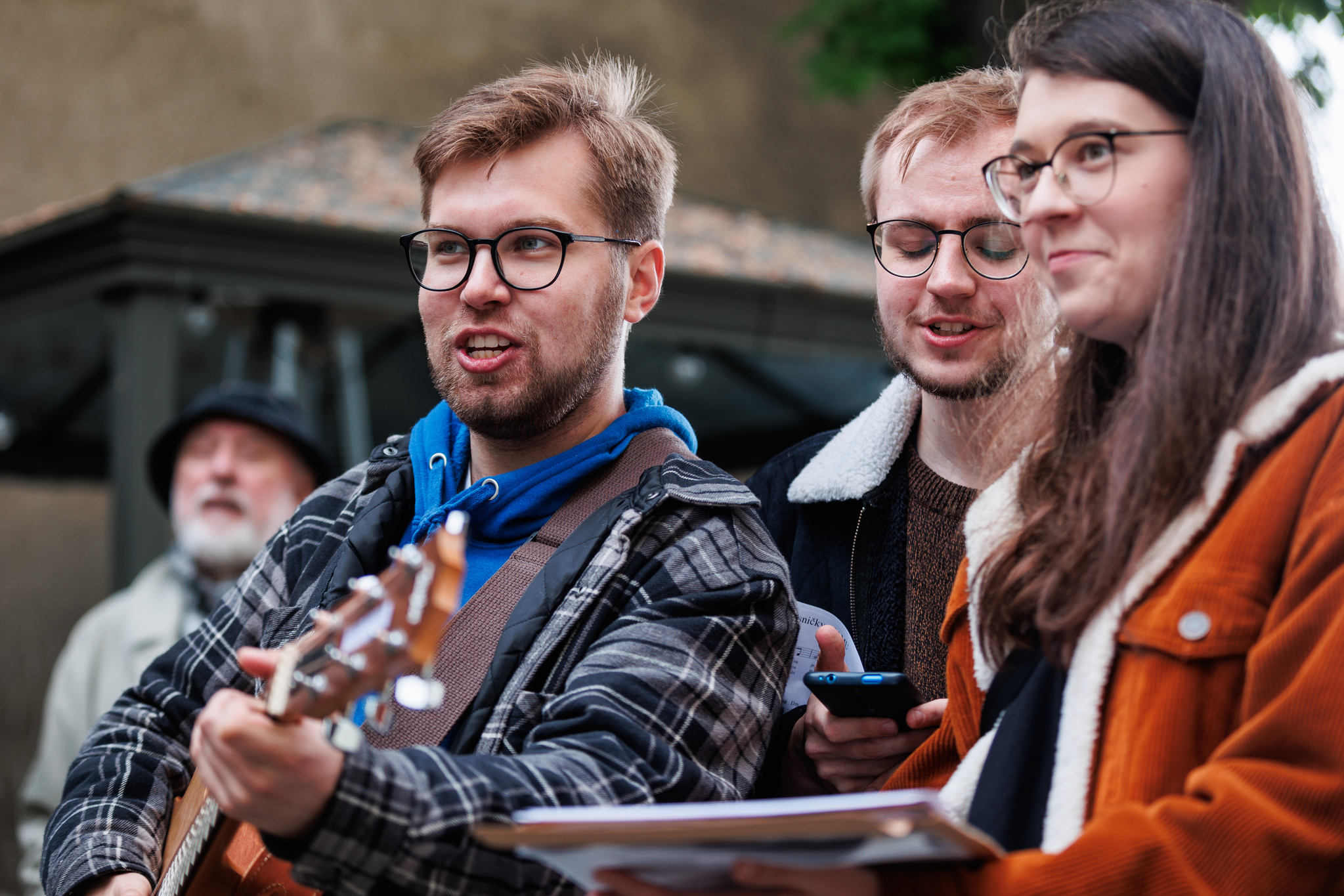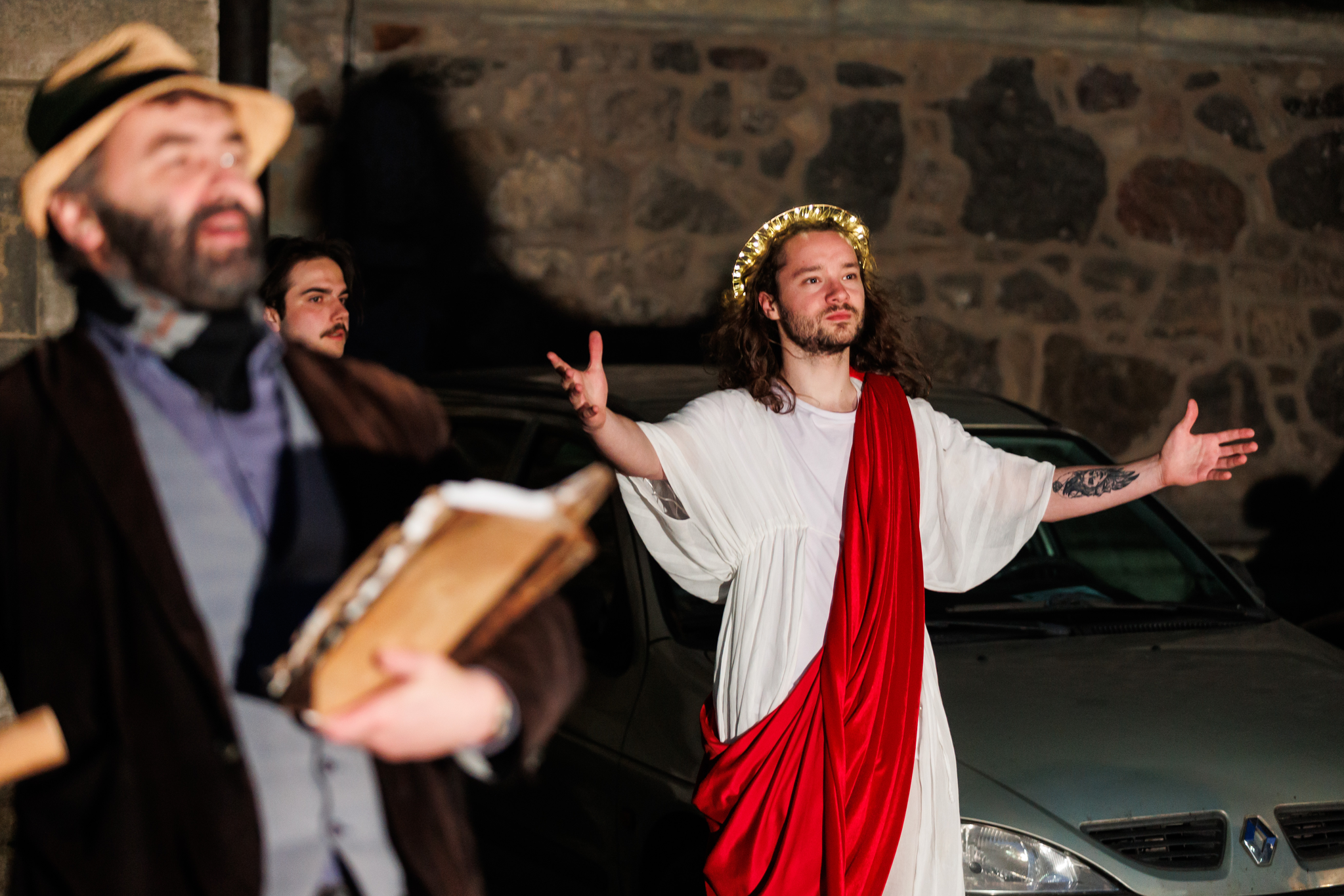 Pouliční divadlo studentů Divadelní fakulty JAMU okolo katedrály svatých Petra a Pavla 20. 5. 2023 v rámci Brněnské muzejní noci ve spolupráci s Diecézním muzeem na motivy biblických i lidových příběhů.