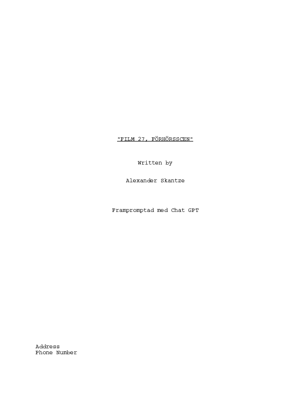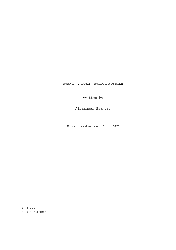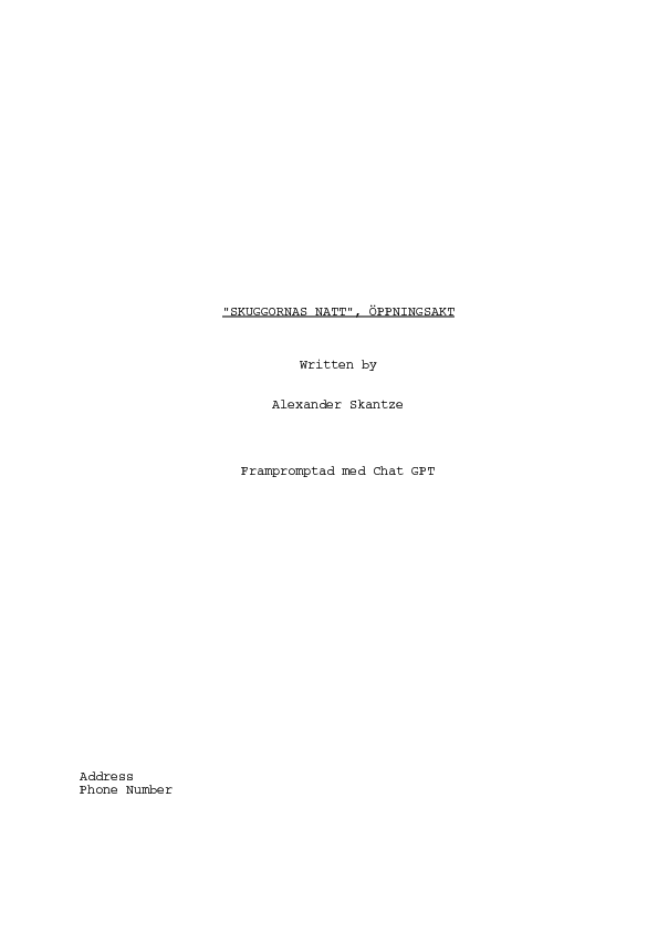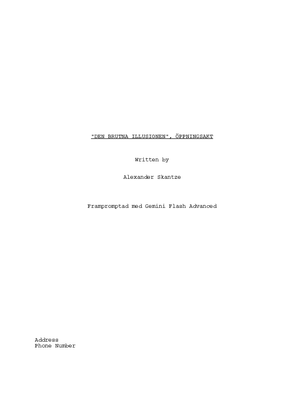 PROMPT: "Skriv dialogmanus över öppningsakten, utifrån ovanstående" (= Output C-6)
