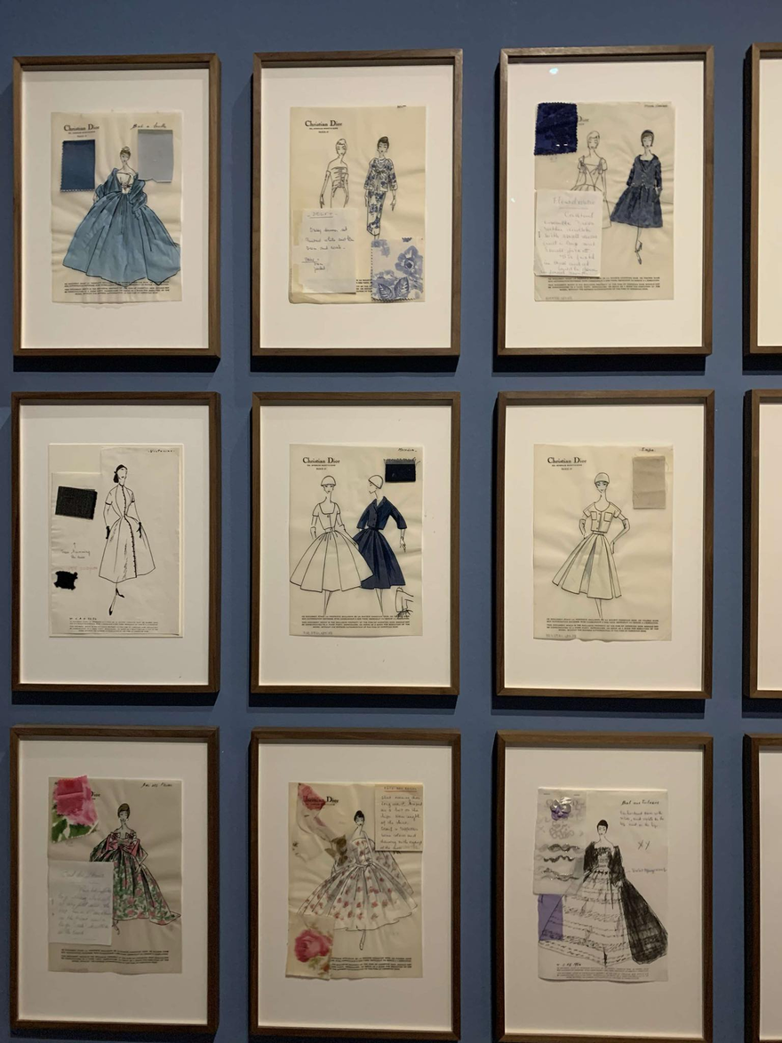 Here in the picture we see some of diors sketch designs. In all the photos there is focus on the silhoette and fabric/print/color intended for the spesific silhouette. The detailing gets a quite big representation through the scetches. I think that shows how the small (design) details does much for the overall (design) impression.