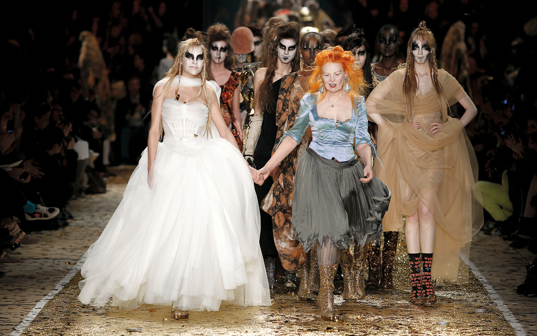 What I found the most interesting from the documentary was her response to a journalist, asking what a punk icon such as herself is doing in Paris, entering the world of bourgeoisie and capitalized fashion. Vivienne believed, that she did what was neccesary to make herself and her statements heard. I think its quite interesting to state that people of the working class - punks, anarchists, need to leave the core of their community behind just to be able to reach out to a larger, more influential audience. She had finally gained space to express herself and speak up, critisizing the british monarchy, capitalism, evoking discussions around sexuality and sexual identity.