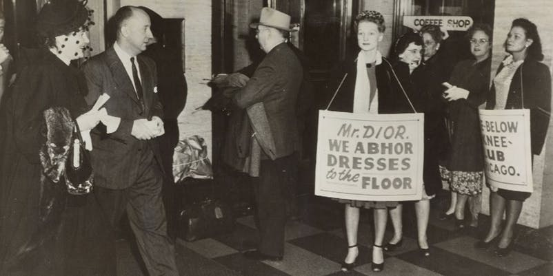 Dior had to justify the length of its skirts, and feminists protested against the return of constrained silhouettes: The waist marked out at the hips. Others rebelled against the abundant use of fabric while the country was still undergoing rationing at the end of the war. The fact that this fashion show was talked about in both positive and negative terms put Christian Dior on the map as a fashion pioneer.