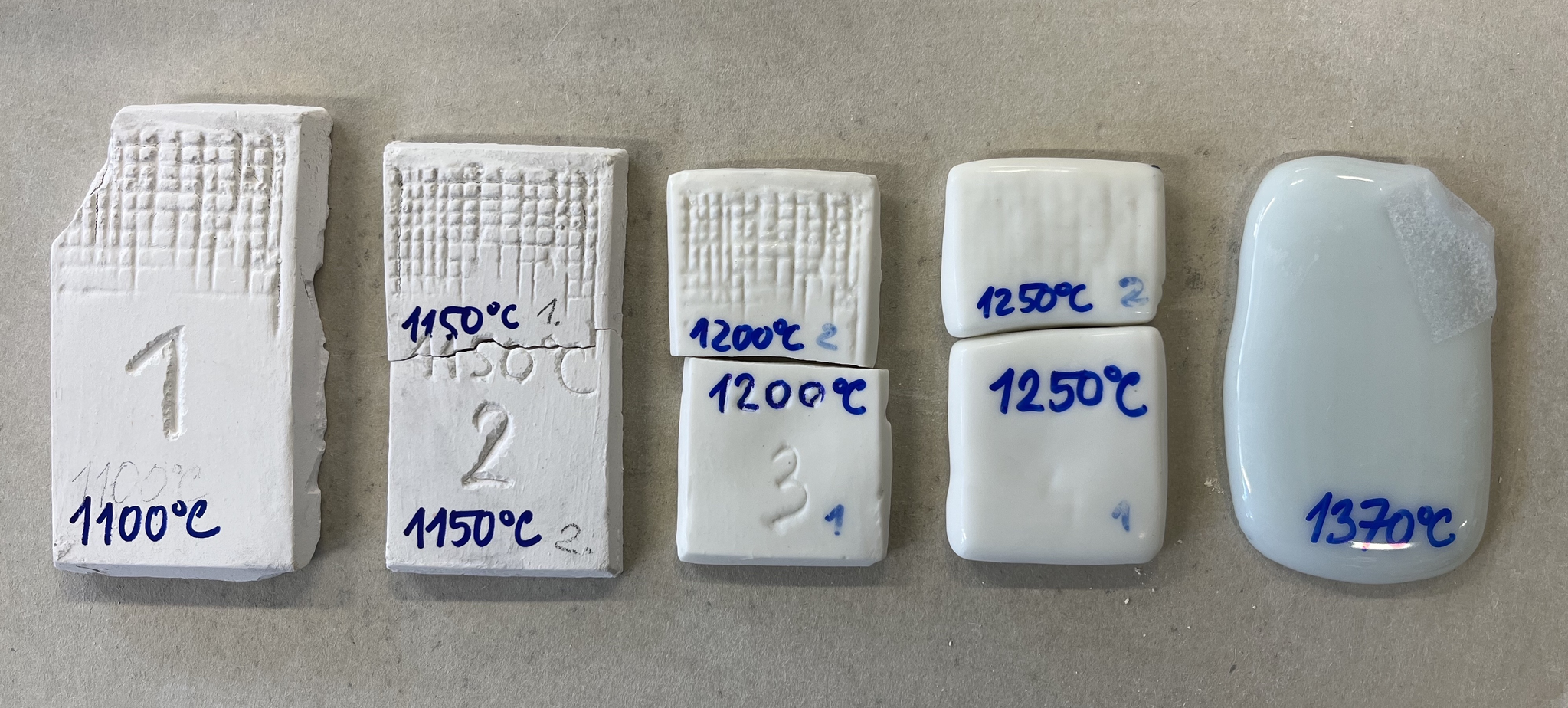 In the research, samples were created from the working glaze. These samples were then fired at specific temperatures to observe how the glaze behaves at various temperature levels. The temperatures were recorded and monitored to ensure future reproducibility.