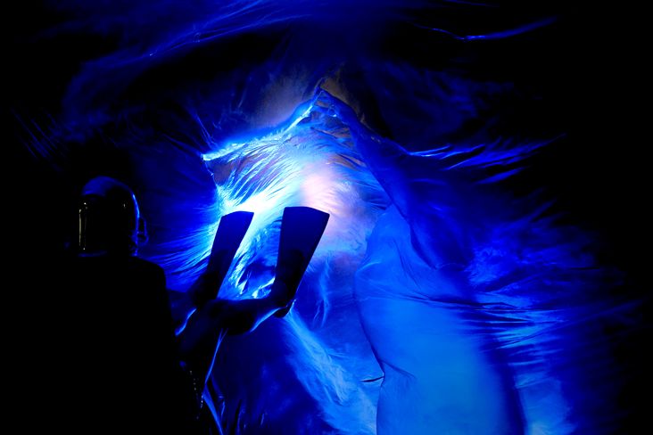 Maria proposed a contemporary dance in which she was dancing with the plastic sheet; the border between the physical world and the world of infinite potential.