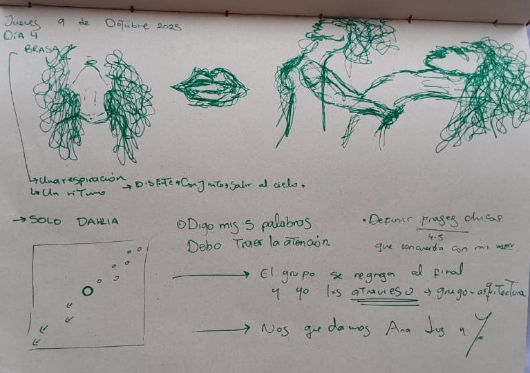 Siento una energía potente que emana hacia afuera, un cuerpo sintiendo sabroso de ser cuerpo, un tiempo personal que se involucra con el de la música, imágenes de expansión.