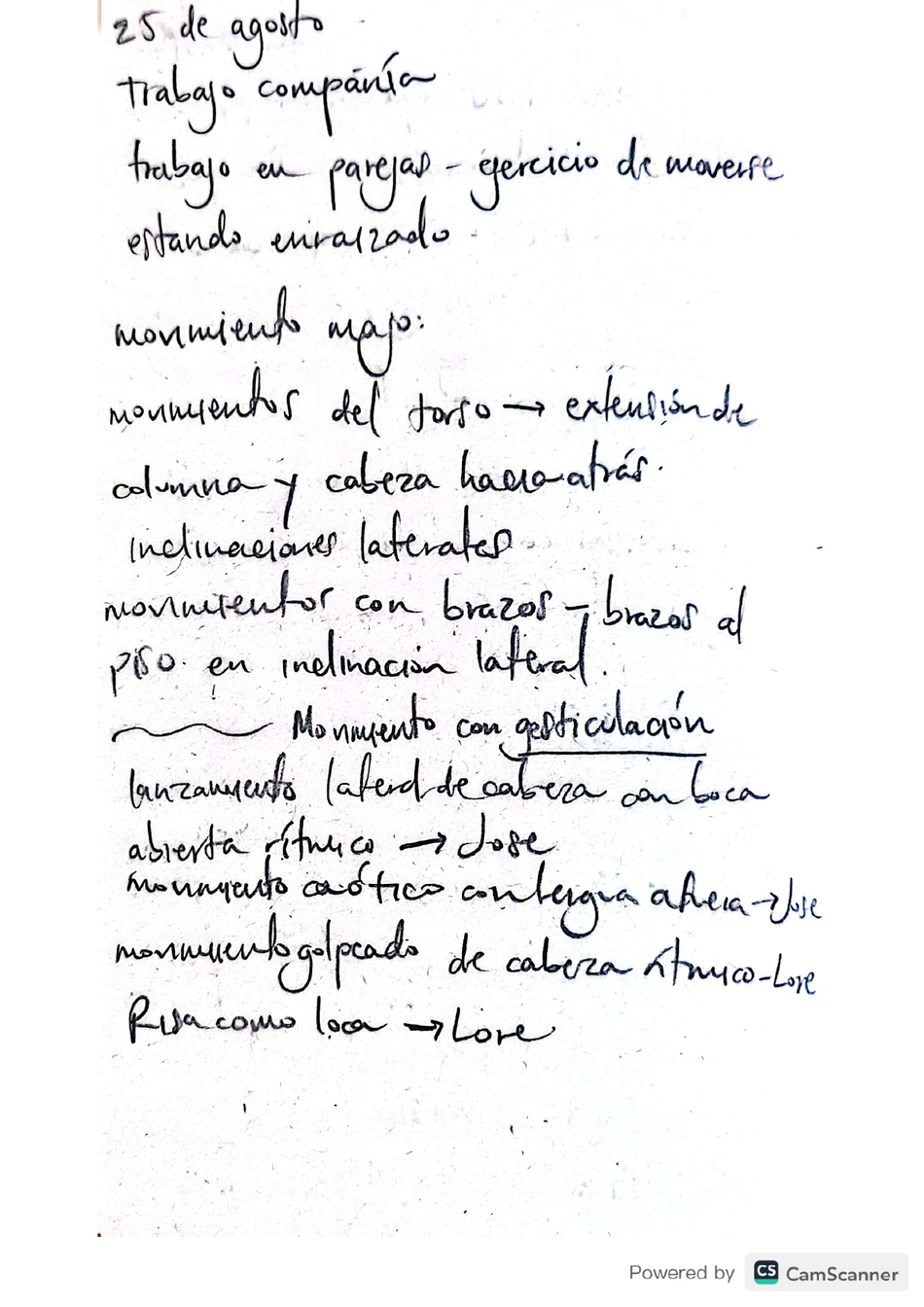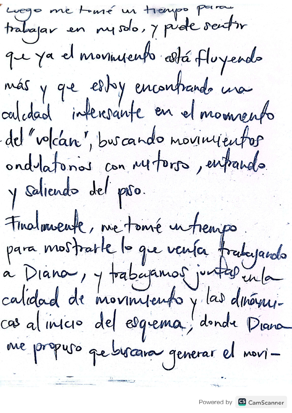 Una de las observaciones que me hizo Diana, fue que puedo buscar más un movimiento ondulatorio con mi torso, lo cual pienso que debo continuar trabajando.