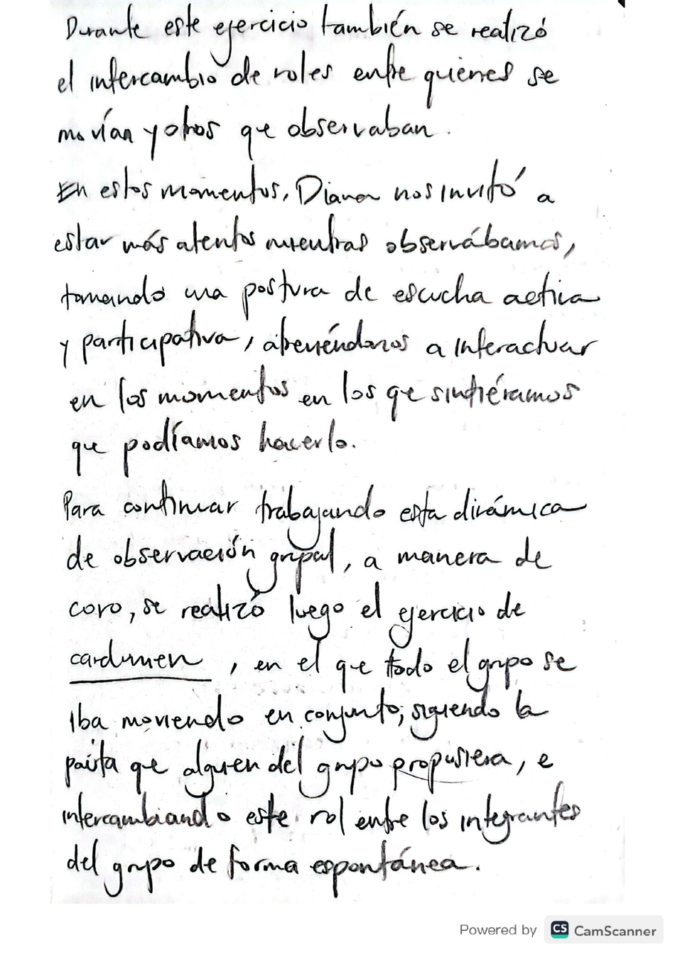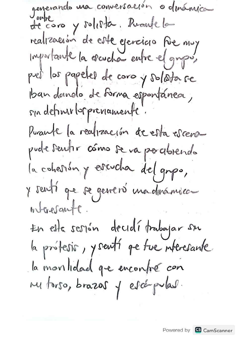 Durante la realización de esta escena pude sentir cómo se va percibiendo la cohesión y escucha del grupo, y sentí que se generó una dinámica interesante.