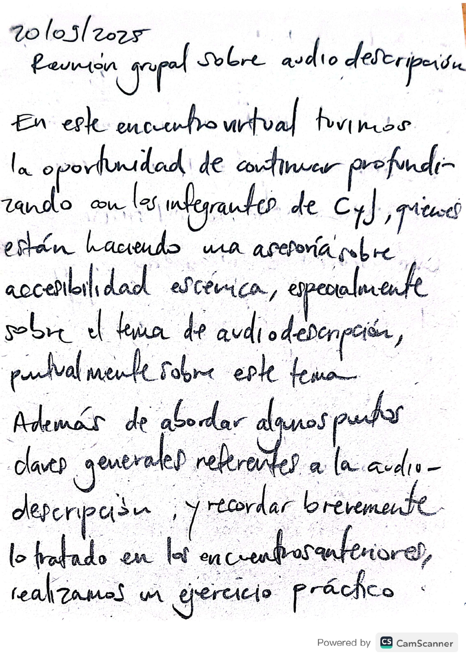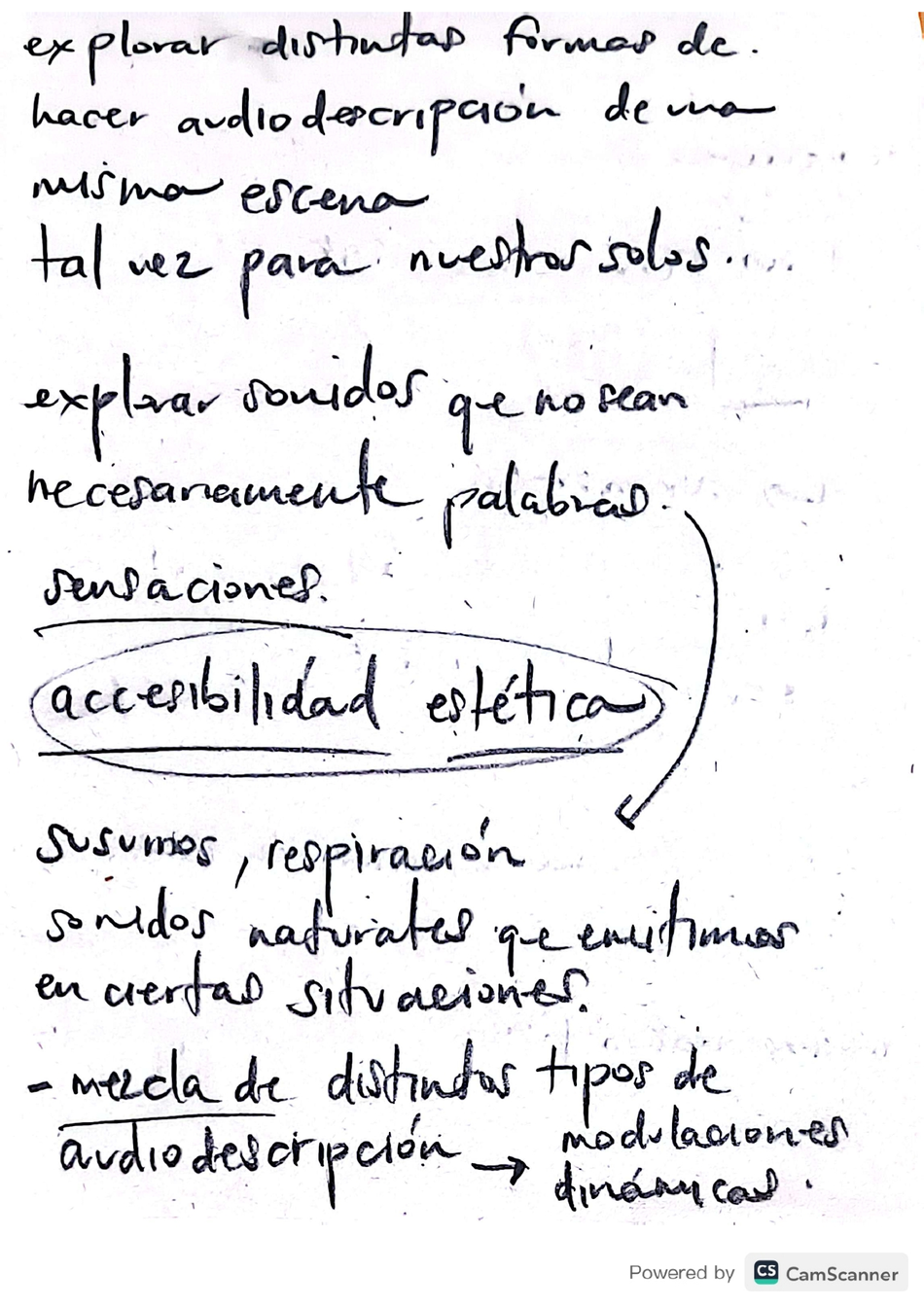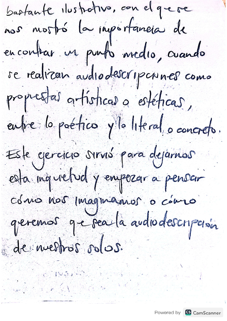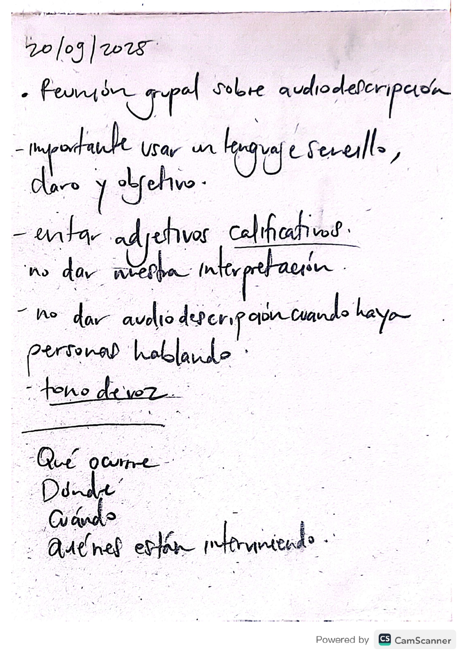 Durante esta sesión se realizaron ejercicios prácticos por medio de los cuales se fueron impartiendo las indicaciones correspondientes en torno a la audiodescripción: