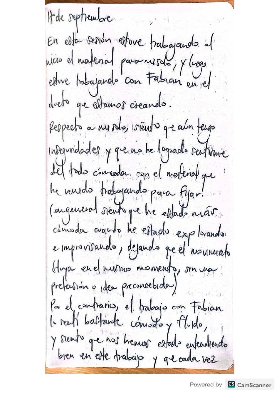 En esta sesión estuve trabajando al inicio el material para mi solo, y luego estuve trabajando con Fabian en el dueto que estamos creando.