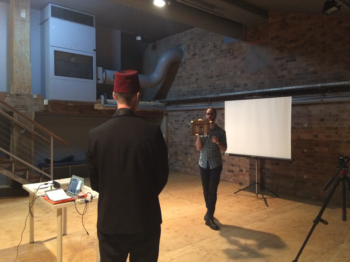 The project began as a pure creative development, fuelled by optimism, with no particular performance outcome in sight. This scattered, part-time collaborative process happened in person, on paper and virtually over six months in 2015 at Metro Arts, a multidisciplinary arts organisation housed in a heritage-listed warehouse in central Brisbane. This period of writing construction and experimentation culminated with a work in progress to an invited audience. The work was then selected for the Queensland Cabaret Festival at the Brisbane Powerhouse and premiered in June 2016.