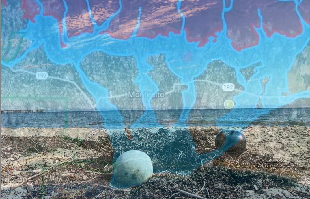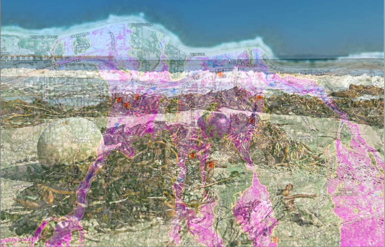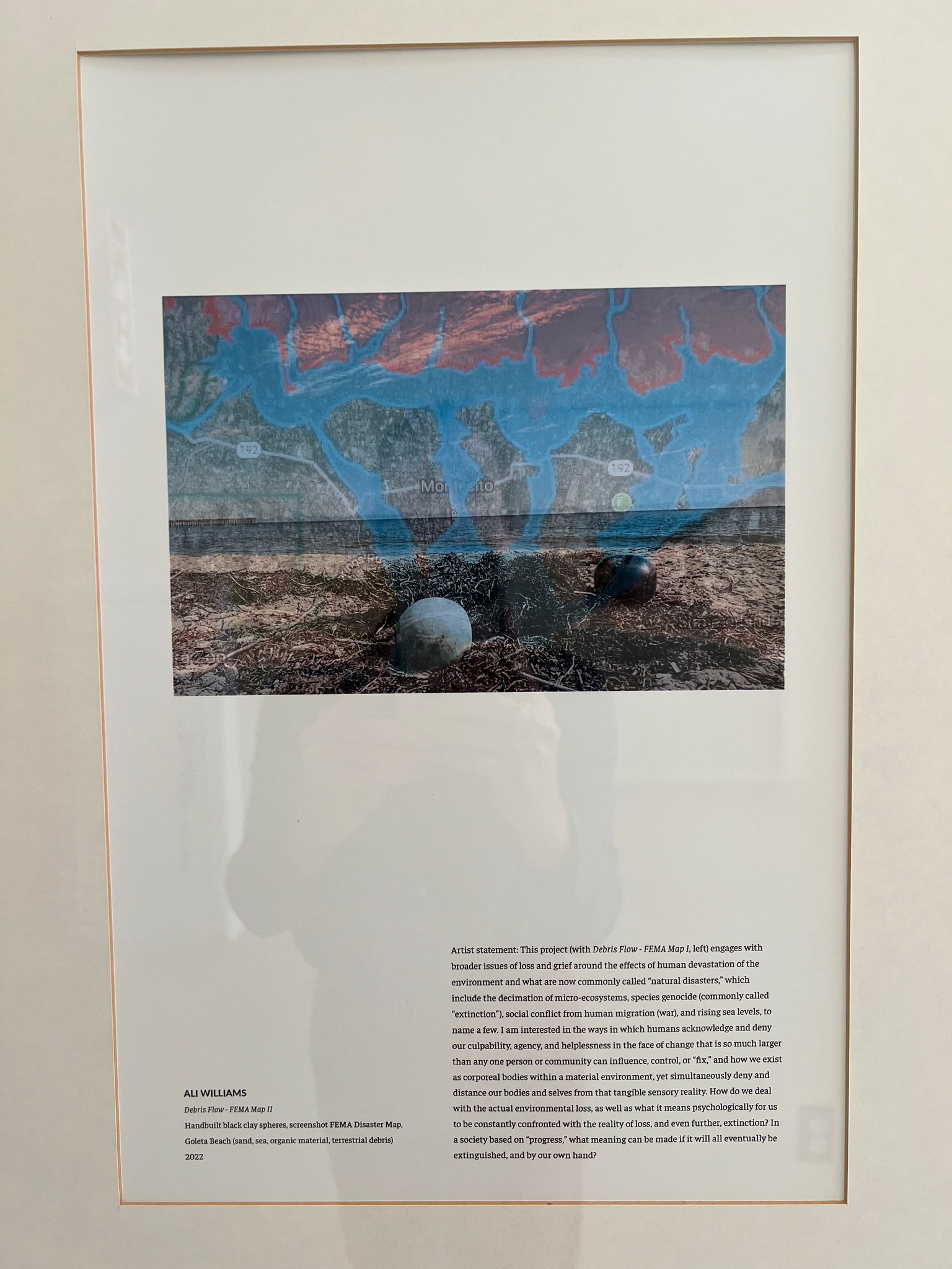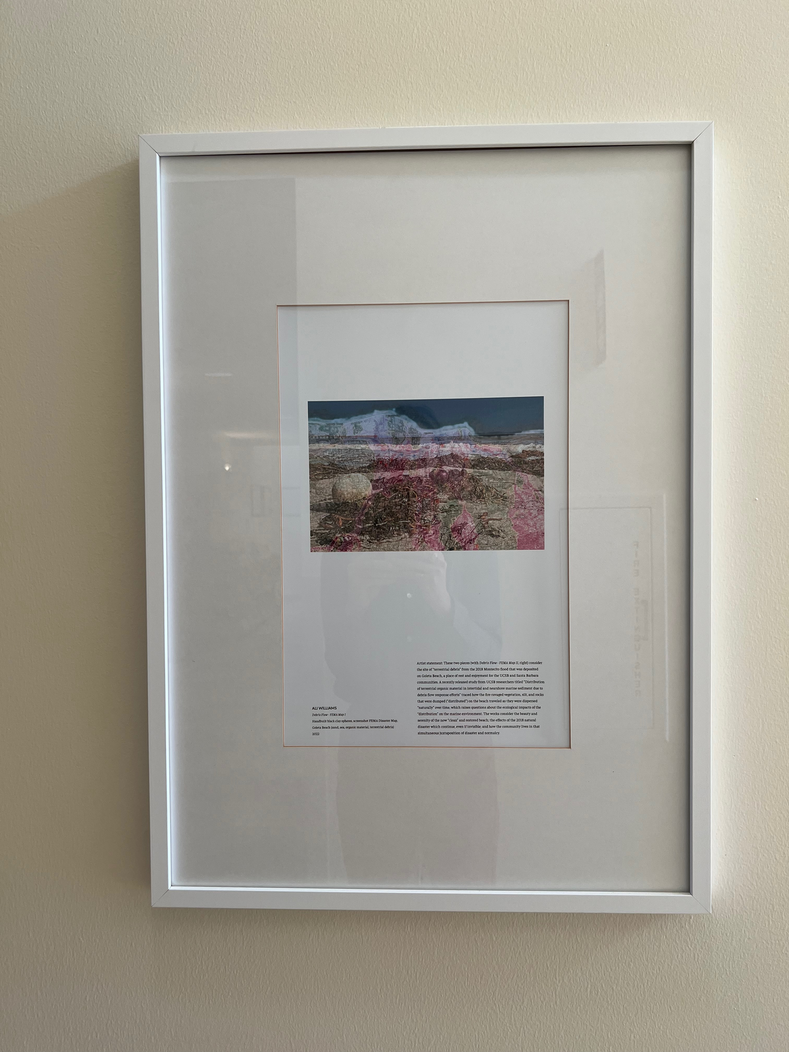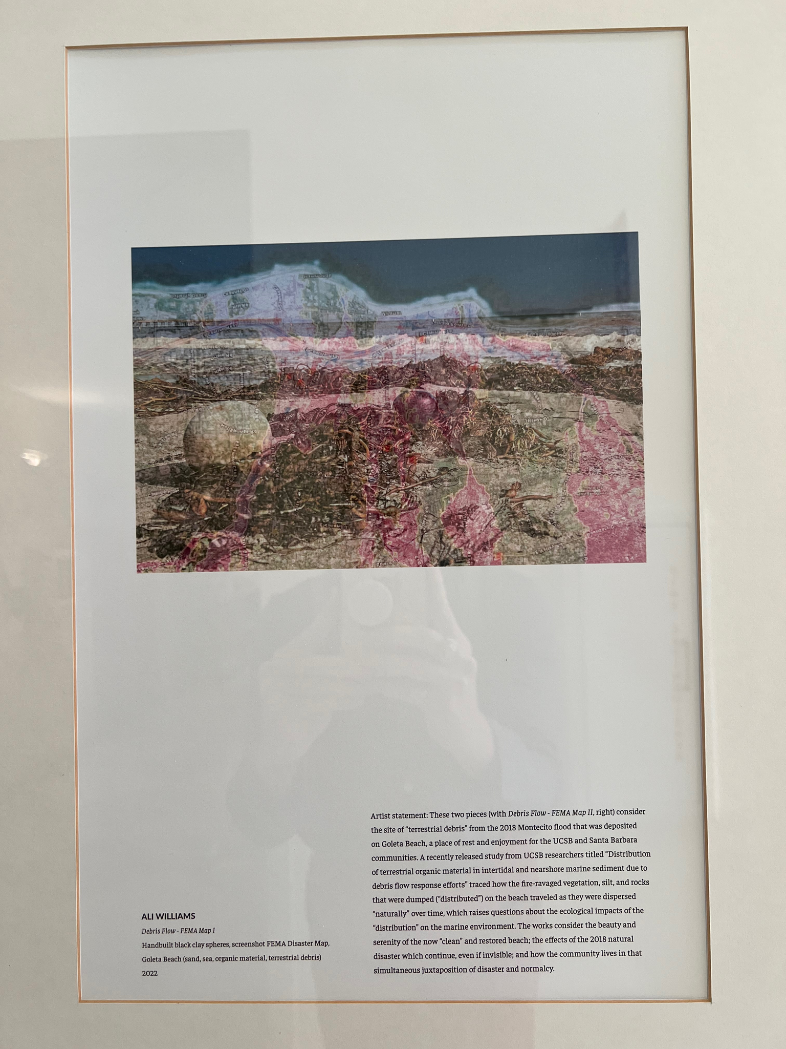 These two pieces consider the site of “terrestrial debris” from the 2018 Montecito flood that was deposited on Goleta Beach, a place of rest and enjoyment for the UCSB and Santa Barbara communities.