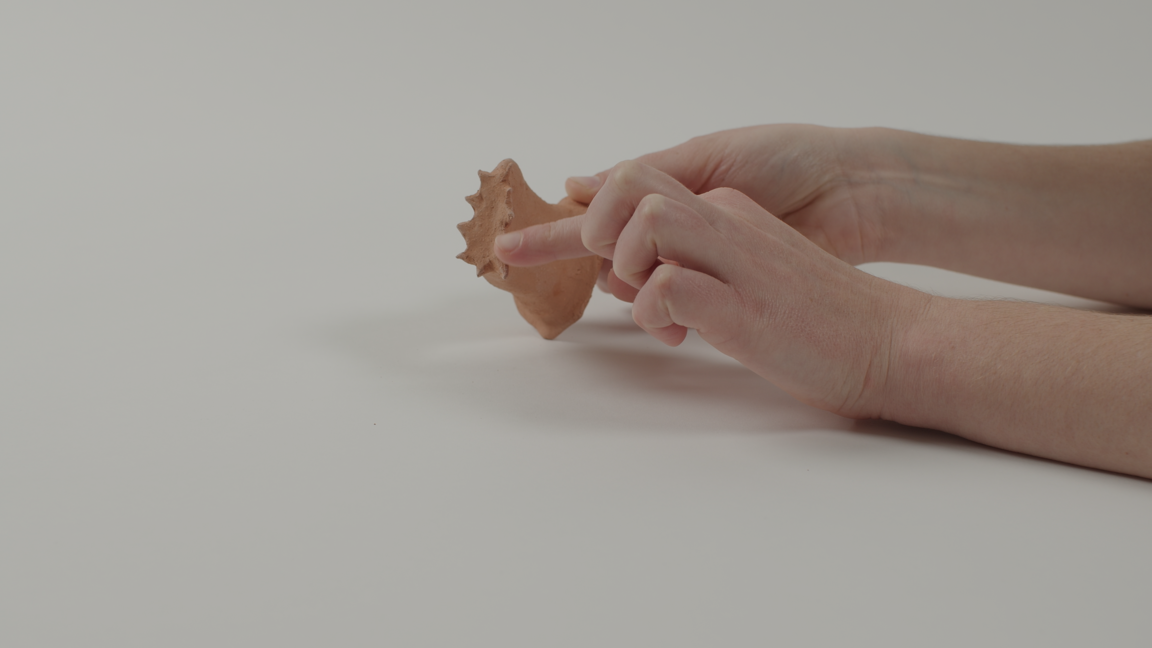 Responding to experiences of the ward environment during the workshop, Cris made a series of clay objects which they described as being “like natural sea urchins.” The forms have a columnar, architectural quality with protruding spikes at the top; visually, they recall the high-security fences that surround many locked units. Reflecting on this association, Cris explained, “I guess some of those creatures, they're very visually appealing, but also kind of like, consume things or hurt things.” The sea urchins’ spikes, or more precisely, spines, anticipate contact and act as a deterrent. They characterise a slow-moving vigilance, with tube feet that allow them to crawl gradually from surface to surface. Read materially, these sculptures function as translations of atmospheric vigilance. Like sea urchins, they hold readiness on the surface. Defence is embedded in form. Vigilance here is not reactive but anticipatory: a condition of being prepared. The sculptures make visible how vigilance operates before action.