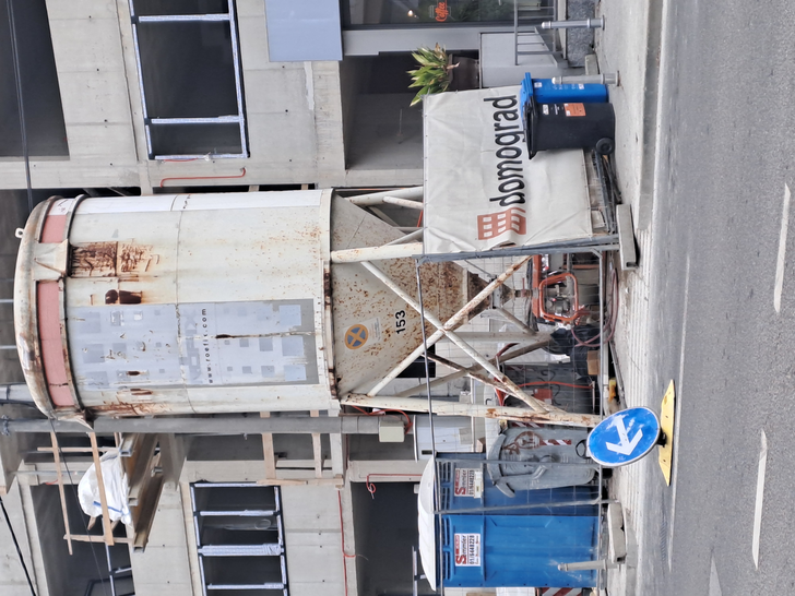 - construction site penetrates the public space occupying sidewalks and road