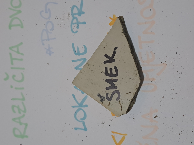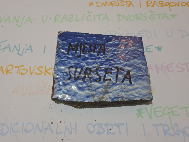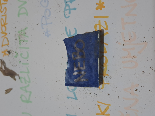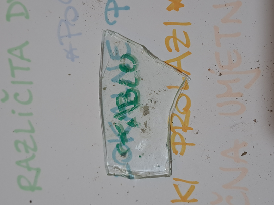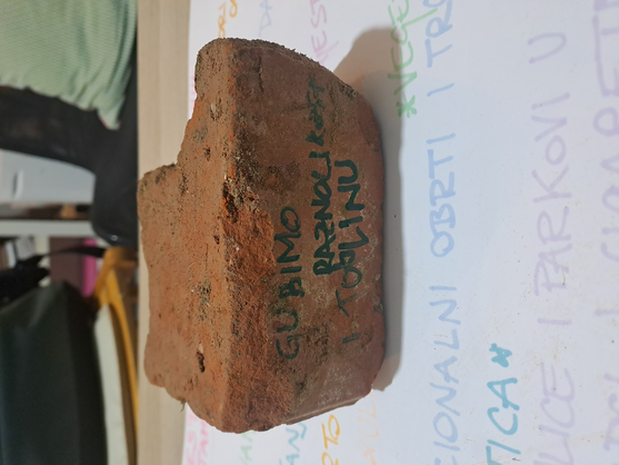 After the song, performers slowly enter the site with a task to explore the site and pick up the pieces of someone's life (tiles, ornaments, bricks, toys...). On the pieces they either write down what will disappear from this specific site (in terms of visual, audio, tactile, and scent they experience there) or they bring the piece out on the table where the spectators can write down their reflections on the question from the first step.