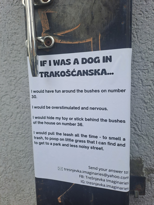-A protest question for the investors came from the thought of Herbert A.S.: "To design is to devise courses of action aimed at changing existing situations into preferred ones." The proposed protest question was: "Dear investors, what is your vision of Trešnjevka's future?"