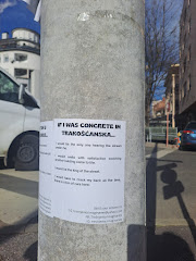 This situation was stressful but at the same time extremely valuable experience for the research. First of all, the whole performative protest got completely another dimension and a real-time clash/performance with the "other side" of the problem. It was interesting to notice that going out in public space to express or discuss certain problems is connected with unemployment. He also stated that the whole street in front of the site is also HIS and that he will lose money because of us being there.