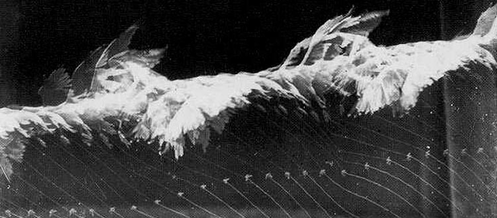 When scientist and cardiologist Étienne-Jules Marey started using photography to record his physiological experiments, he turned to Willème’s photosculpture process to simulate and, more importantly, solidify motion as a three-dimensional, sculptural animation. Fascinated by bird flight and the movement of wings, he set out in 1886–87 to record the flight of a seagull. [fig. 13] Influenced by Eadweard Muybridge, who had made synchronised photographs of the same subject from three different angles of view, Marey came up with the idea of taking synchronised photographs from the lateral, frontal, and vertical view. In order to retrieve accurate information about movement from a series of photographs, Marey built two darkened pavilions flanked by two chronophotographic cameras, with a third camera fixed to the roof facing downwards onto an area of black cloth rolled out on the ground.6 These three synchronised cameras could simultaneously capture three different angles of the same subject. Much like the contemporary 3D scanner, and reminiscent of Willème’s technique, the chronophotographs made along the X, Y, Z axis collected all the information needed to subtract a three-dimensional object from a real bird in flight. [fig. 14] ‘We have been able, using these three images, to build a series of figures in relief showing the successive positions of the bird’, Marey wrote. He created ten three-dimensional sculptures showing the various positions of a seagull during flight, separated from each other according to the real distances between each recorded position. [fig. 15] Finally, he merged the bodies of 24 birds into a single sculpture, hereby creating an exact three-dimensional figure that would correspond exactly to the physical distances between positions spaced at one fiftieth of a second intervals.7 [fig. 16] [fig. 17] In this, Marey had expanded on Willème’s photosculpture process to create a solidified volume of motion. On the one hand, he translated a photograph’s frozen moment of time and space into sculpture, and on the other, he developed new techniques that laid the foundations for cinema.