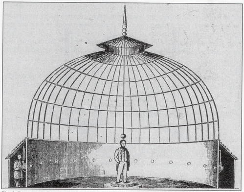 | fig. 11 | Willème's photography studio with 24 synchronized camera's in a round, glass-domed pavilion. |