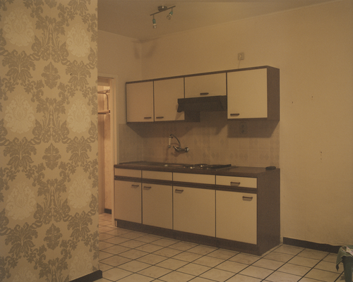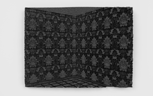 The image used for Photographer comes from a Super 8 film my father once recorded. It shows a family member taking photographs, which has symbolic resonance for the work. What interested me most about this image was the profile of the person and his camera. When considering images to convert with my photography-into-sculpture process, this image seemed, to me, like the relief of a frieze. My interest in this sculptural application of photography led me to record new, malleable images that could be appropriated to create objects: images of landscape and memory that could be semantically altered by changing their physical framework and context. This would also shift their emotional meaning into a grid of historical concepts and abstraction. I started applying this procedure to different photographs in order to see different effects. At first, I chose the most emotional images from my series, so as to bury their emotional content in abstraction. In addition, I selected images based on their possibility of becoming an interesting frieze. For example, figure 23, the picture of an apartment, is a deeply emotional image, and converting it into abstraction served its purpose. [fig. 23] But beyond this, the wallpaper in that room proved to be a very interesting object to convert into three dimensions. [fig. 24]