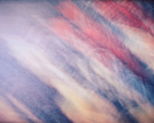 I also tried a different process of abstraction: I projected the Super 8 films made by my father on a screen and simultaneously recorded analogue photographs of these projections. The discrepancy between the still of the photograph and the motion of the film made colourful abstractions of our family album. Nude Beach Bound shows a half-naked woman walking on a French nudist beach, caught on film and angered by my father’s intrusion. I recorded her progression in nine steps, experimenting with the different speed of the projection and the recording time of the photograph. These captured images of motion, relating to Marey’s chronophotographs, turned into abstract hues and their 3D printed counterparts into abstract, rocky formations. [fig. 25] Still, I found them not abstract enough — they were still revealing too much. [fig. 26] I wanted to go beyond rendering flat surfaces into bas-reliefs.