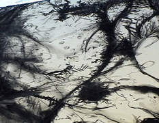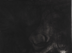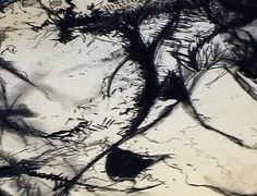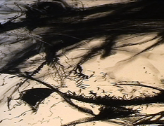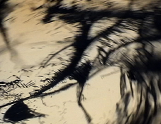 Having recalled experiences, the hums began drawing with memory and charcoal, documenting the recollection on paper (tree) [2]. During the process the hums became conscious that, after a period of time, a shift in emphasis occurred from drawing with memory to drawing in response to the marks as they appeared on the paper. This initiated the decision to rotate the paper in order to counteract a fixation with composition and to continue drawing with memory rather than response. The process was recorded externally with a fixed camera (stills) [3] [4] [5] [6].