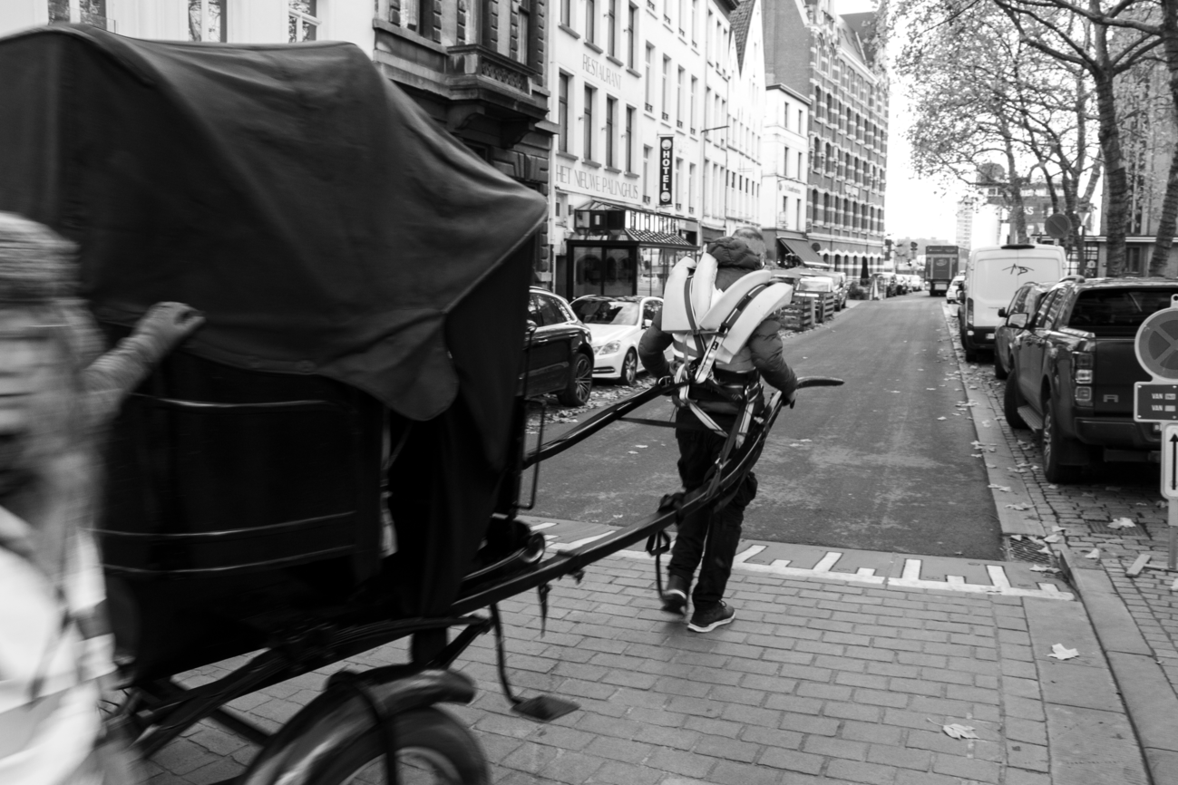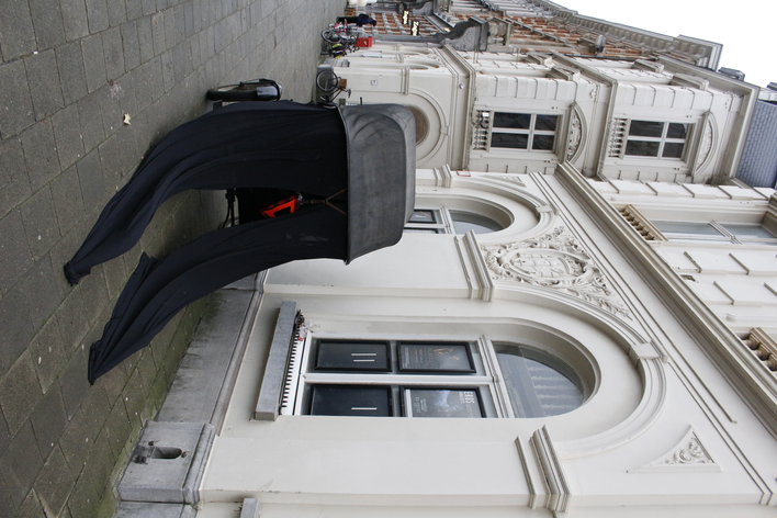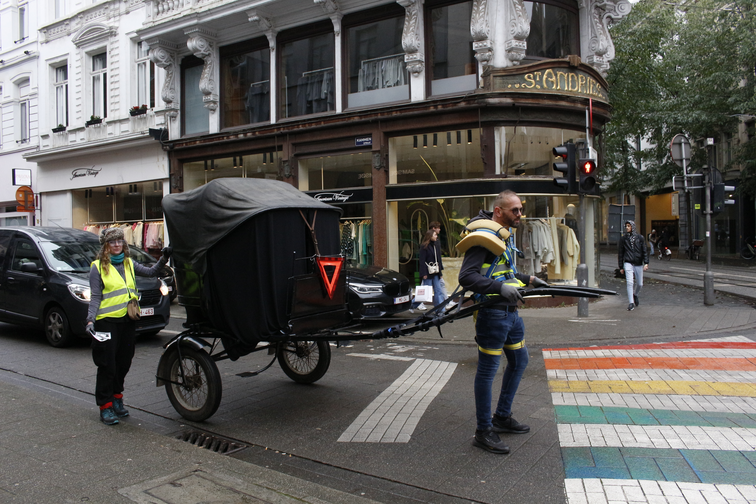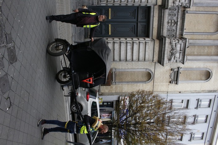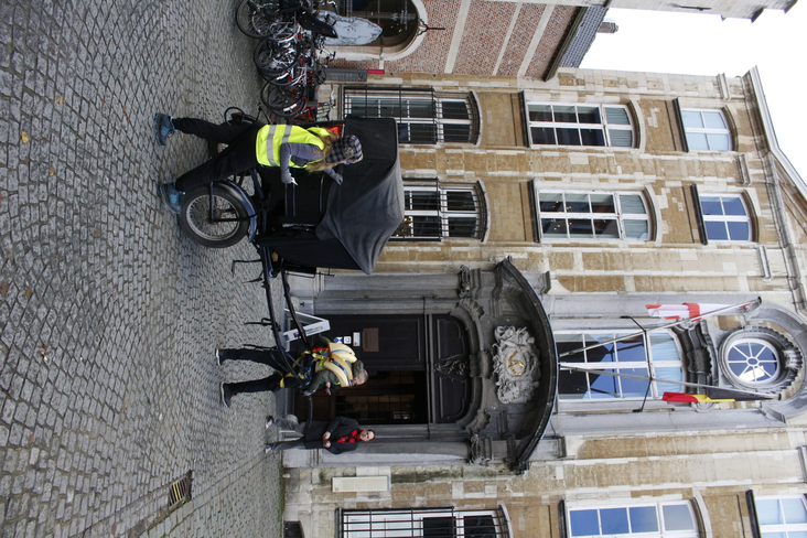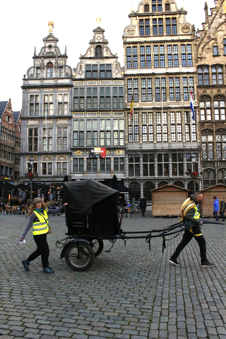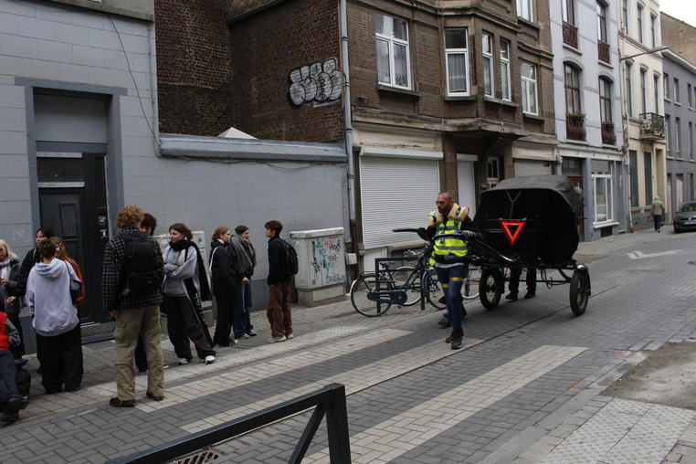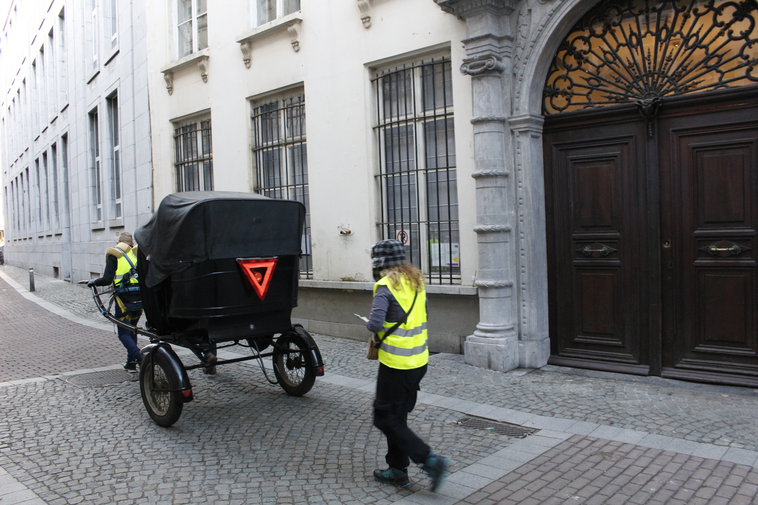 During the performance of the experiment in the Schaerbeek neighbourhood of Brussels, onlookers warned us, attempting to intimidate us into stopping the filming and photographing of the Tour, which we chose to ignore. Spectators slipped out of view, lowering their blinds as I filmed the area around the Gare du Nord. In Antwerp, the performance was met with occasional polite exchanges, but usually with averted eyes, except in the larger squares, when one might stare from the anonymity of a crowd.