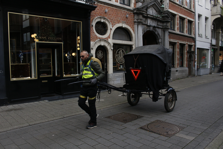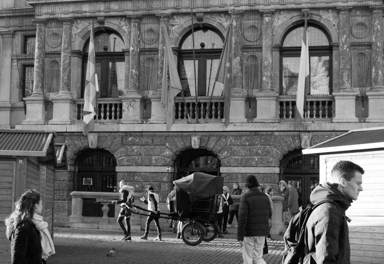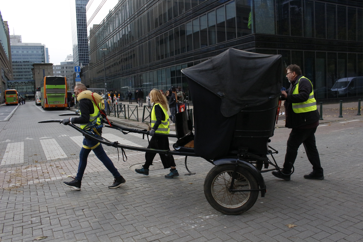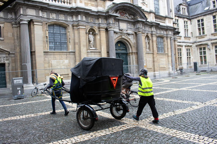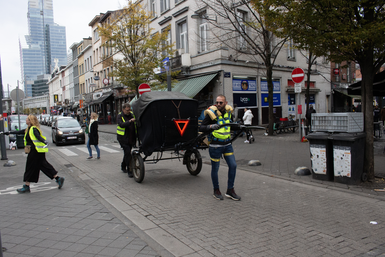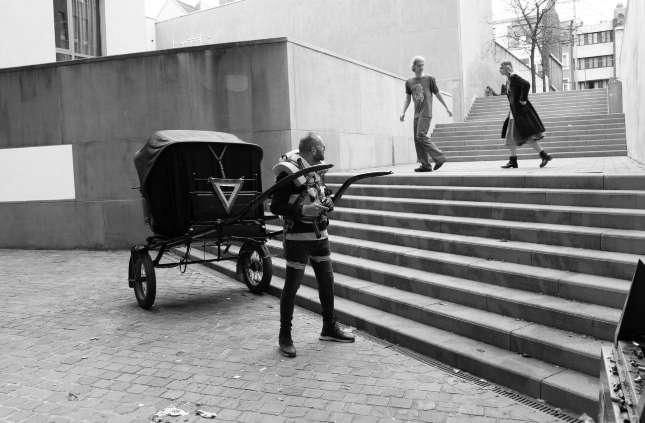 During the performance of the experiment in the Schaerbeek neighbourhood of Brussels, onlookers warned us, attempting to intimidate us into stopping the filming and photographing of the Tour, which we chose to ignore. Spectators slipped out of view, lowering their blinds as I filmed the area around the Gare du Nord. In Antwerp, the performance was met with occasional polite exchanges, but usually with averted eyes, except in the larger squares, when one might stare from the anonymity of a crowd.