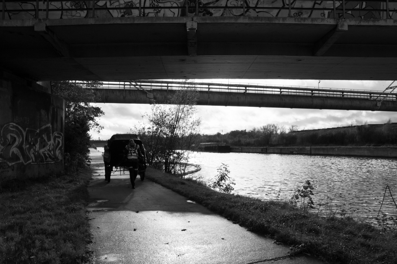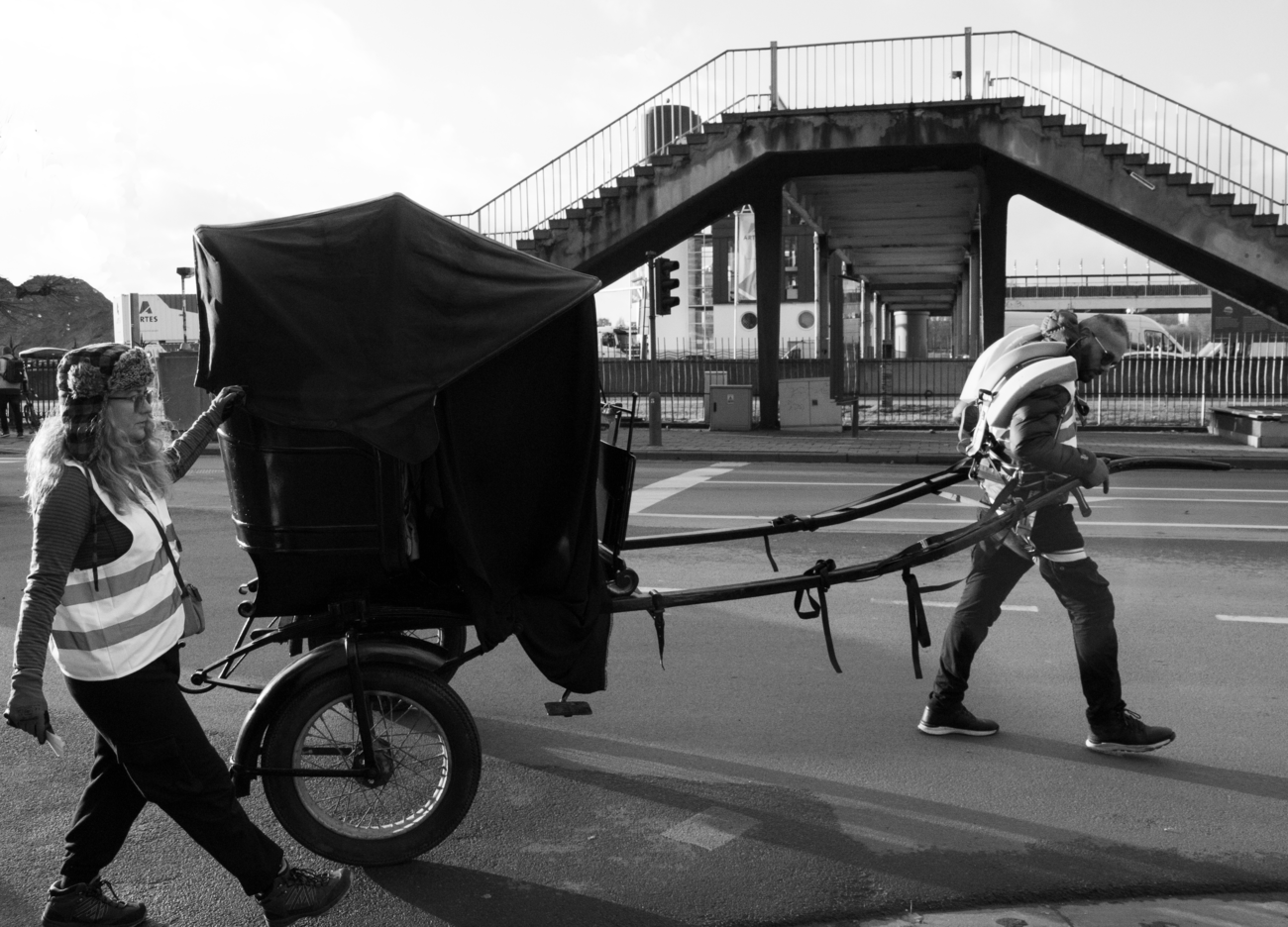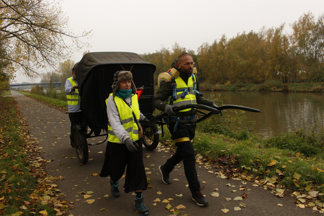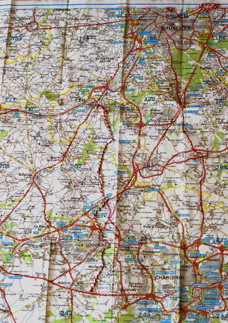 Bart Geerts served as adviser to the entire project, from its inception, execution, and analysis, to its exposition here. Vincent Degouys plotted the carriage route through Belgium, a nation enmired in a colonial past inextricable from its manifestation of a colonial present. The Tour started in Binche, in French-speaking Wallonia, passing through former mining towns and farmlands, along canal towpaths, roads, and highways (see Figure 3), with the carriage overnighting in the garages, gardens, and pasturelands of strangers. We made it as far as Tubize, on the industrial outskirts of Belgium’s capital city. The carriage was then transported by truck to Schaerbeek, Brussels, where we toured and related our experiences at the symposium ‘Re-Envisioning the View: Deconstruction of Colonial Perspectives’ led by Bart Geerts at LUCA School of Arts. After this, the carriage was transported to the Theaterbuurt in Antwerp, where we re-commenced the Tour from Kavka Oudaan, in conjunction with the experimental art platform To Be Antwerp, in Dutch-speaking Flanders.