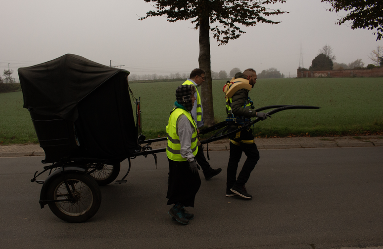 While it is unknown whether The Grand Tour experiment has impacted the spectators along its traverse, or the tectonics underlying the landscape, it is clear that the Tour’s participants are forever changed, having re-invoked, re-lived, and re-inflicted its trauma upon themselves and the landscape, as both a vivisection and autopsy in a relational space-time. As we speculate upon the outcome of the experiment, reflecting on the bodily strain, the road hazards, and the fomentation of rage set off by our passage through Schaerbeek, Brussels, we have not emerged unscathed. The Grand Tour journey was cut short near Brussels, halfway along its planned route, while the carriage and participants were transported to Brussels and Antwerp, out of fear for permanent damage to the psyches and bodies of the participants. There is, however, potential in this assay, which, according to Arno Böhler’s philosophy as artistic research approach (2019), may bring contingent new realities into being.