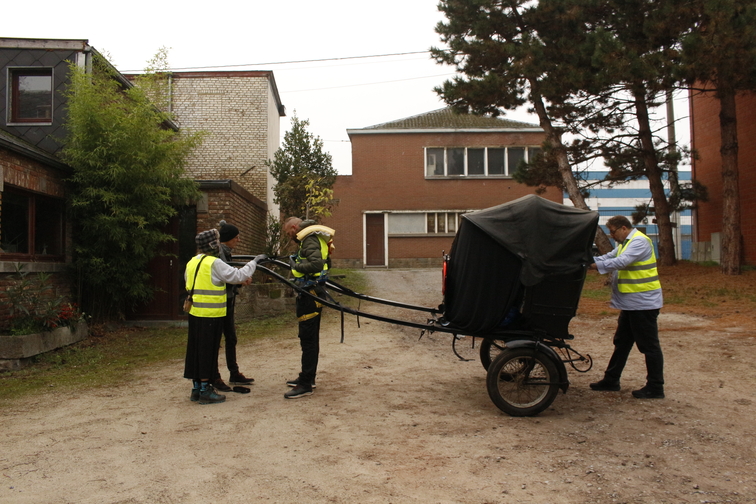 As the carriage’s anachronistic outline crossed the Belgian countryside, the staffage emerged as subjects, no longer objects, while the driver was obscured behind curtains, perhaps spectral, or even non-existent, however, the driver’s presence was palpable, and their impulse ineluctable. The carriage, an ever-present encumbrance and burden, could not be parked on the road or abandoned, and as a historical object, could not be destroyed — it could only be borne and conveyed.