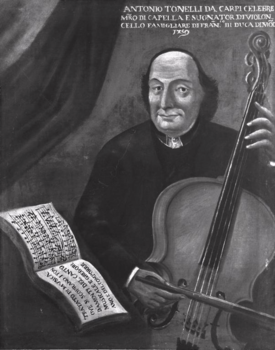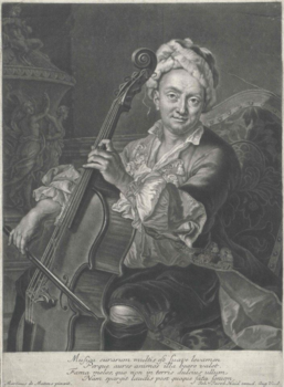 Figure 18 - An engraving by Carlo Buffagnotti (Bologna, 1688). Buffagnotti was a student of the famous Bolognese cellist Guiseppe Maria Jacchini.