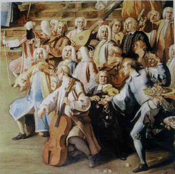 Figure 23 - Detail from a painting by Niccolò Maria Rossi: The Procession of the Feast of the Four Altars (1732). The cellist is tough to be Alborea.