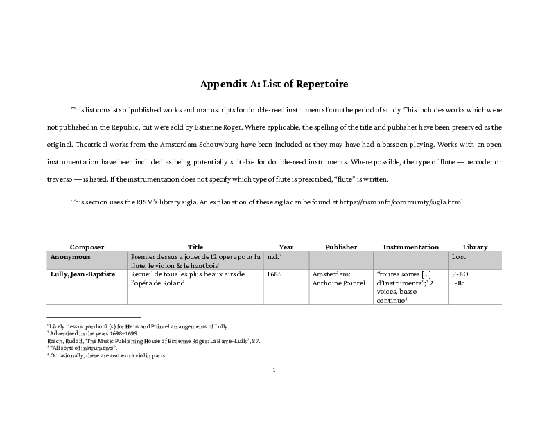 This study seeks to illuminate a body of forgotten repertoire, documented in the Dutch Republic's courts, theatres, military, amateur circles, and churches. Comprising of a dissertation and two appendices, this study explores how double-reed instruments were used in the Dutch Republic in the years 1677–1725, focusing on seven types and sizes of instruments made by Richard Haka (<1646–1705). This critical period in double-reed history marks Europe's transition from the direct descendants of Renaissance-type instruments to the French-style instruments of the high Baroque period. The Dutch Republic, being the origin of one quarter of all pre-Classical oboes and the earliest-surviving datable bassoon, was one of the first places to adopt these French instruments outside of France — though the older forms of double-reed instruments continued to be used throughout the period of study. One could question the need for having so many of these instruments in a region which is largely unexplored in terms of historical performance practice and repertoire. Double-reed players of the Republic served in a variety of capacities and could be found playing several genres of music, but due to the historically-inconsistent use of terminology, determining the exact introduction and extinction of these instruments is nearly impossible; however, by contextualising an array of seemingly-unconnected primary sources and analysing details in the iconography of the period, a more-informed perspective on the matter can be gained.