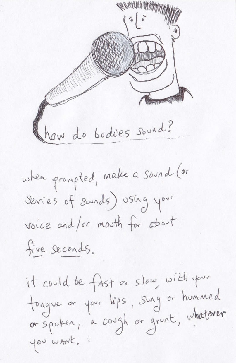 The Recorded Body is a process-based sound art project about bodily iteration and interdependence. It uses participatory performance and embodied listening techniques to explore the following questions: How do we recognize each other's bodies? What is contained by the body, and what is outside its bounds? When does a body need or necessitate other bodies?