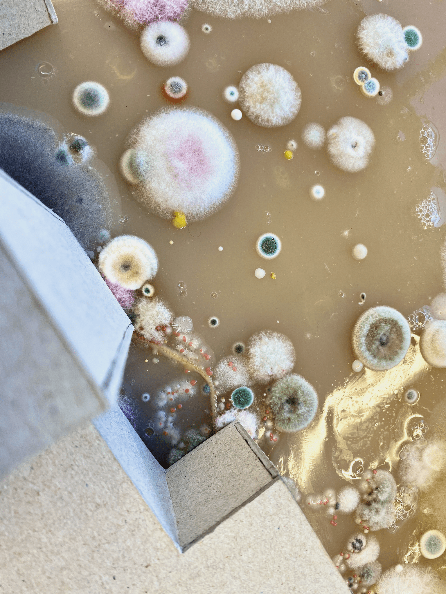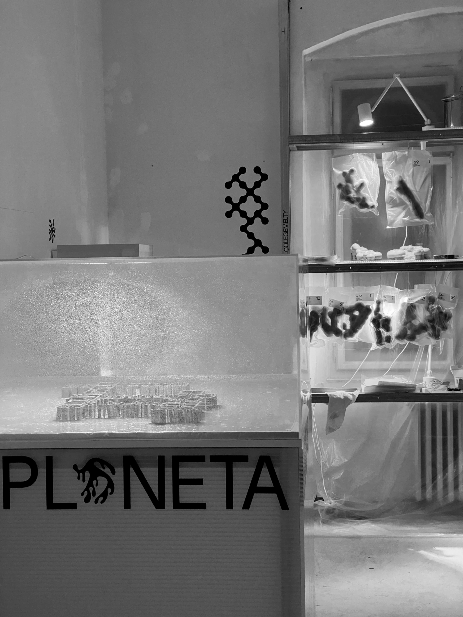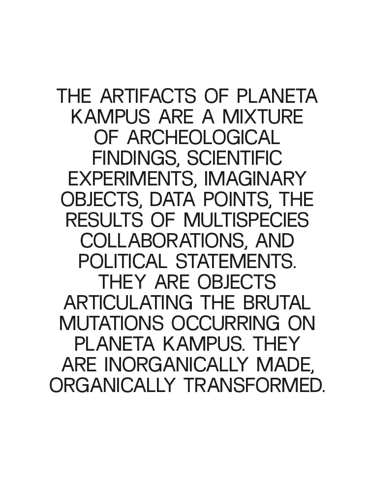 In environmental design, the question of the action of other, non-human organisms is often raised. The use of mold seemed highly suitable, as it is an organism that is one of the least popular in human households, and at the same time it harbors incredible strength and vitality and now plays a major role in the generation of objects. Planeta Kampus is influenced by frustration with the discourse surrounding the deteriorating climate. The goal of the project is to draw attention to the anthropocentric narrative, which is identified as the main cause of accelerating global warming.
