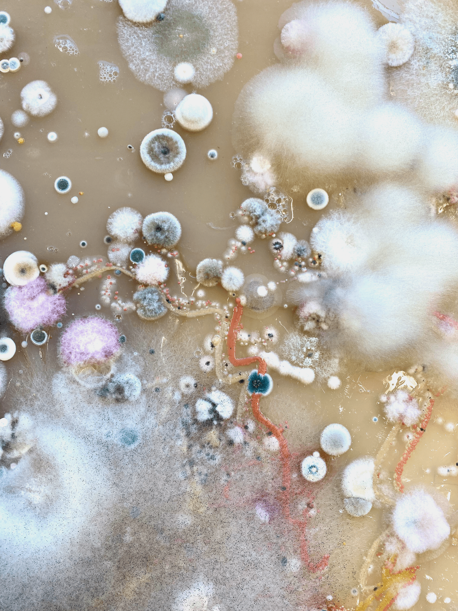 The main axis of the project is the use of ubiquitous organisms and their growth to imagine alternative worlds. Planeta Kampus is both ecological imagination and imaginative ecology. It takes place in fictitious time-spaces, in a dream world where massive tree roots overgrown with multicolored lichens communicate with microscopic organisms through extensive mycelial networks. It is an alternative world that carries a message to transform our thinking, imagination and our behavior and relationship with the world.
