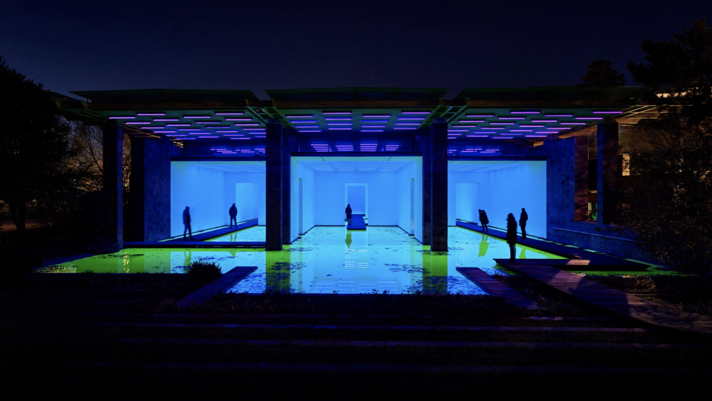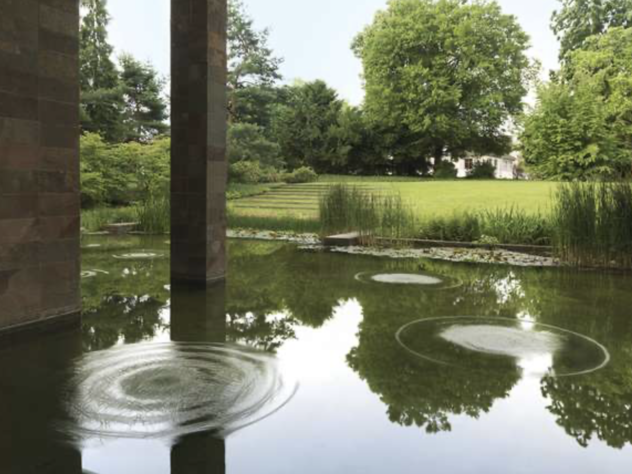 Water Lilies (2012) site-specific installation by Philippe Parreno, at Beyeler Foundation. Parreno incorporated subaquatic subwoofers, which made Plexiglass circles vibrate creating rippling patterns across the water's surface.