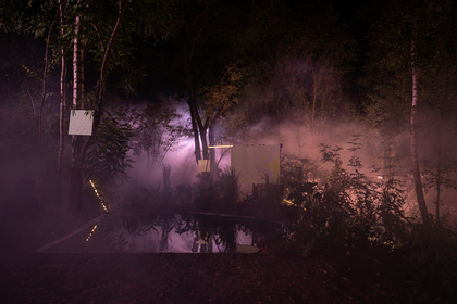 The four works discussed in the following section, decentralize the visitor’s experience through immersive settings that blur the line between exhibition and performance. Their decentralizing qualities align with Heiner Goebbels’ concept of the Theatre of Absence, where the center is dispersed, the subject displaced, and meaning destabilized. By displacing the actor from their central position, Goebbels gives equal weight to all theatrical means and elements of performance juxtaposing sound, light, text, materials, bodies, and space, while preserving the individual integrity and distinct contribution of each element to the overall performance event (Goebbels 2015). These formats also echo what Gertrude Stein called Landscape Plays. Stein rejected the Aristotelian hierarchy of theatrical elements, in which plot and character take precedence over speech, song, and spectacle. In her poetics of landscape theatre, something analogous to setting or mise-en-scène expands to incorporate all other elements. These formats echo what Gertrude Stein called Landscape Plays. Stein rejected the Aristotelian hierarchy of theatrical elements, in which plot and character take precedence over speech, song, and spectacle. In her poetics of landscape theatre, something analogous to setting or mise-en-scène expands to incorporate all other elements. Stein developed this concept as a response to what she called “nervousness”, an emotional syncopation between the audience and the events unfolding on stage (Adam Frank, 2018)..