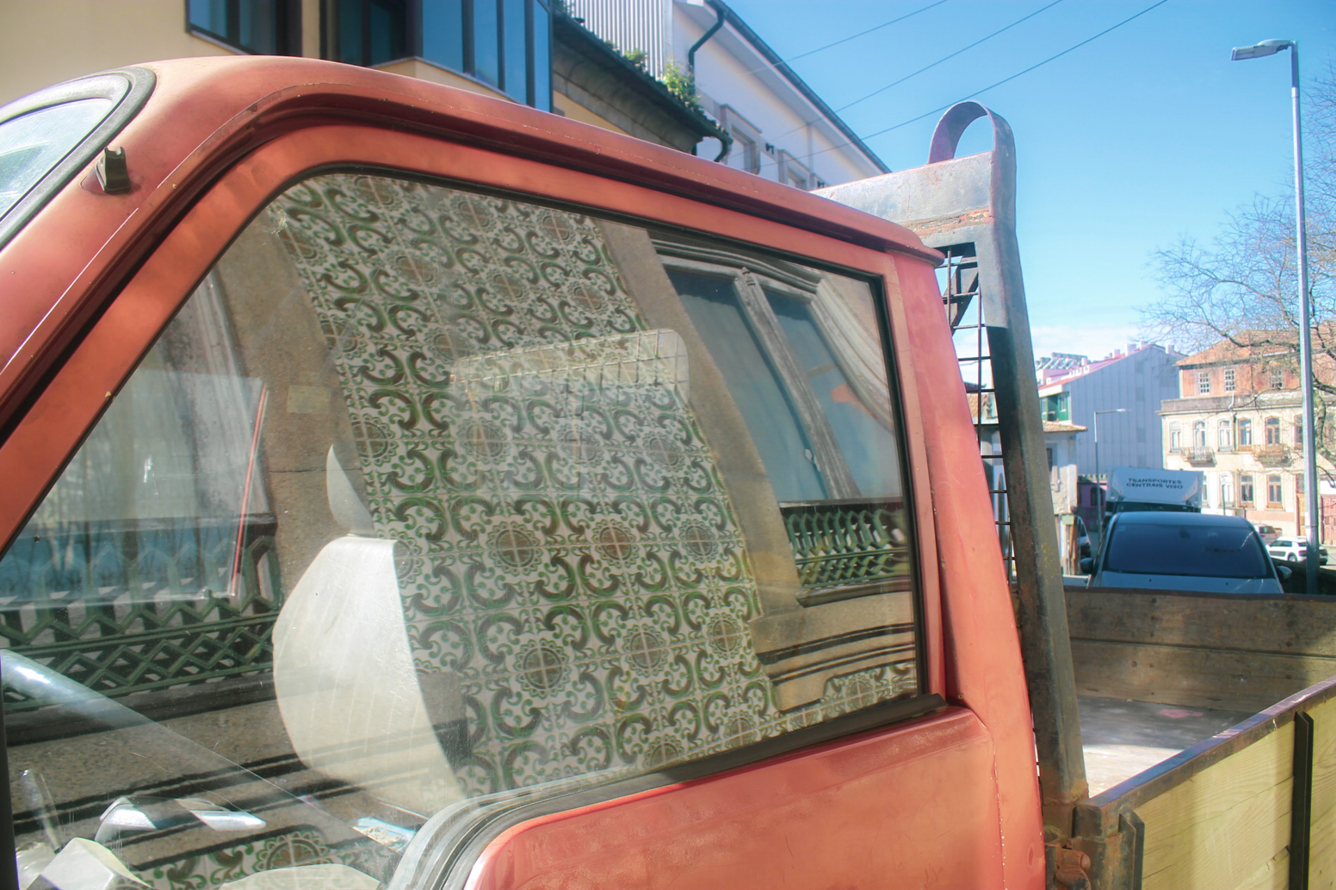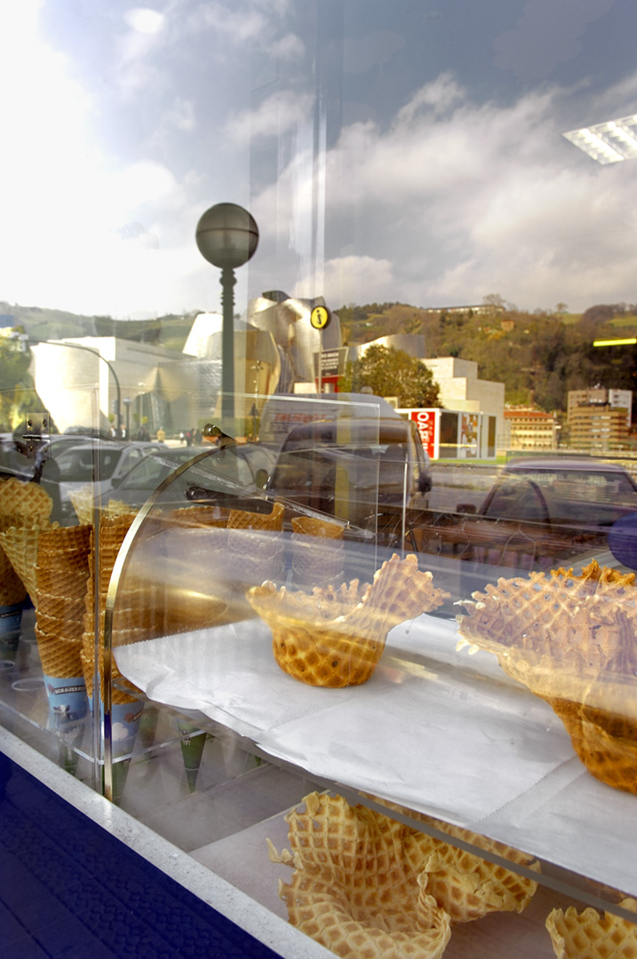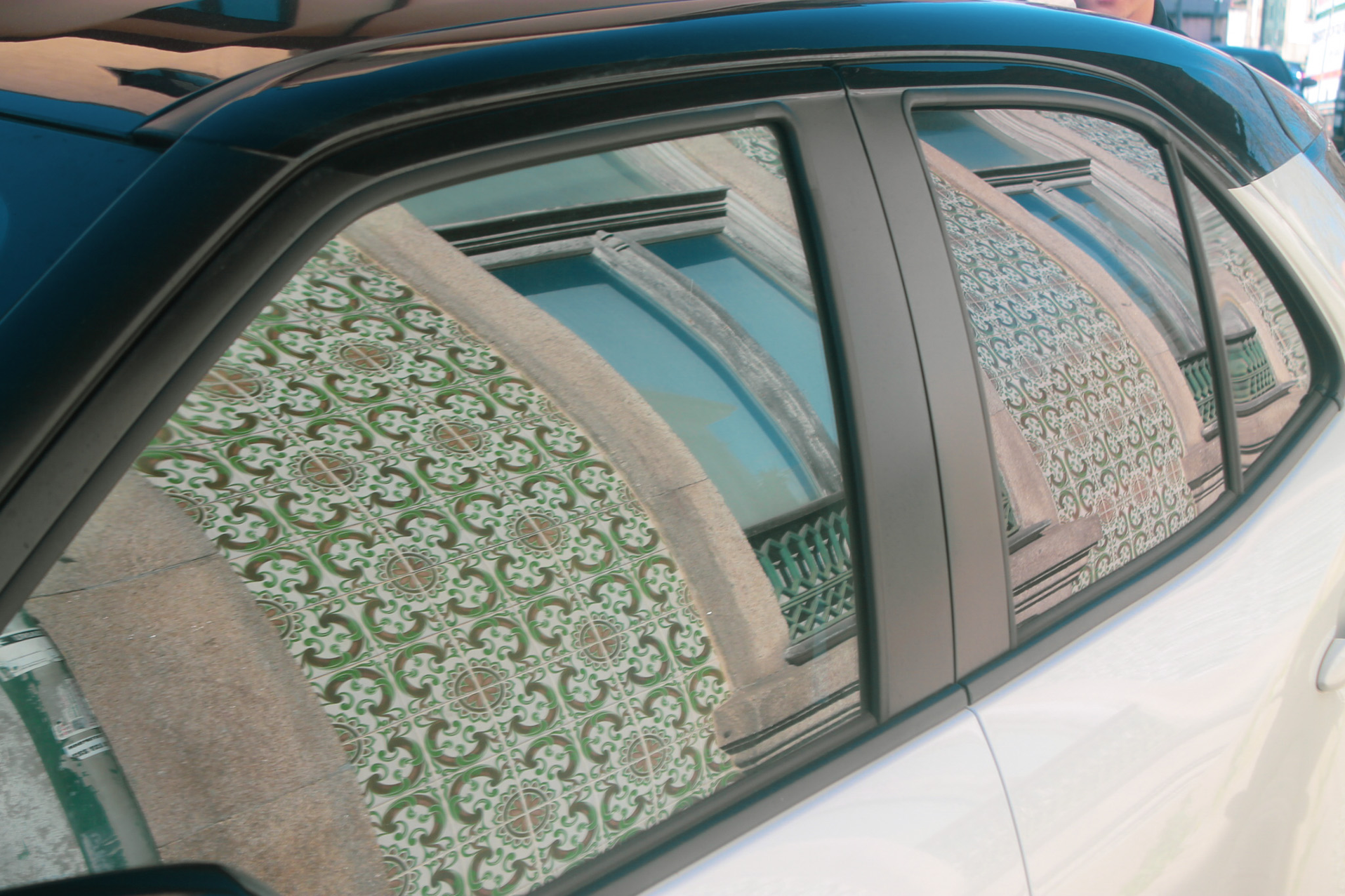 in windowpanes, car mirrors, puddles