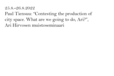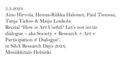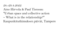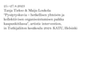 CITY AS SPACE OF RULES AND DREAMING promotes emancipation and democratisation in urban space by cross-examination through artistic research, empirical urban research, political theory and legal theory. The study strengthens polyphony of urban space and thereby develops a more just city It asks: How is urban space formed and shared, and who has access to it? What normative and de facto instruments regulate, control and inhabit this space? What kinds of processes, structures and spaces of inclusion and marginalisation, as well as disagreement and controversy are there in the city? What kind of fractures, escape lines and dreams are hidden in the normativity of urban space? What kinds of spaces of shadow, noise, potentialities and dreams are there and how do they actualise? The study reaches beyond established art-science boundaries by bringing new and more inclusive means of “soft law” to urban decision-making and inviting different neighborhoods to dream of their own dwelling-regions through imaginary urban archaeology and fictionalising democracy combining different artistic mediums. The project is coordinated by the Academy of Fine Arts (Doctoral programme) at the University of the Arts Helsinki. Other partners are Helsinki University Faculty of Law, Helsinki University Faculty of Arts/ Aesthetics and Aalto University Department of Built Environment. In Memoriam Ari Hirvonen (1960–2021) The responsible leader (PI) of the project is Maiju Loukola at the Academy of Fine Arts / KuvA, Uniarts Helsinki. The other research group members and co-initiators are Aino Hirvola (Dept. of built environment, Aalto University), Tanja Tiekso (Faculty of Arts/Aesthetics, Helsinki University Faculty of Arts/ Aesthetics) and Paul Tiensuu (Helsinki University Faculty of Law). Since 2023 Jaakko Ruuska (KuvA, Uniarts Helsinki), Henna-Riikka Halonen (KuvA, Uniarts Helsinki) and Niran Baibulat (KuvA/Uniarts Helsinki) have contributed as postdoc artist-researchers for shorter periods. Other collaborators include Stefan Winter, Zen Marie, Brigitta Stone-Johnson, Anita Zsentesi, Chris Butler, Jan Schacher, Josue Moreno, Denise Ziegler, Simon Critchley, Antti Nyyssölä, Gabi Schillig and Kristina Sedlerova. Villanen We dedicate this project to Ari, and to Stargazing