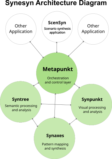: The central orchestration layer that coordinates all system activities and provides integration points for external applications (such as ScenSyn and other applications shown at the top of the diagram).