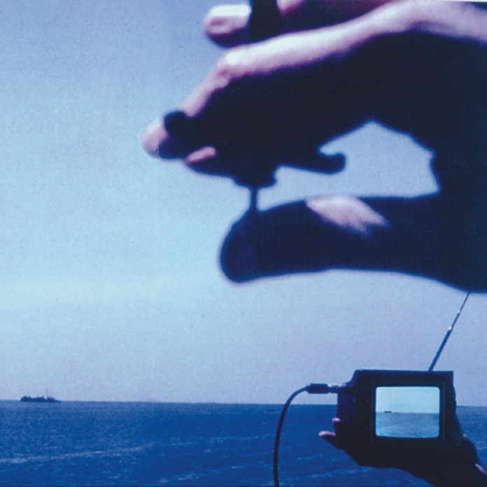 Descending all the way down the stairs, the main room stretches out like a concertina. The ceiling is punctuated by eighteen neon lights arranged at regular intervals, covering the whole length in a homogenous halo of blue light. At the end, nestled in a tiny square aperture measuring 30.48 cm wide that passes through the screen built entirely into the wall, stands the lens of a camera facing outwards and whose content is retransmitted on the monitor in front of us. Delayed by three seconds, the footage is projected back on the same surface, covering it as if it were a second skin. « Might the light of the projection alter the images captured by the photocell? » you ask aloud. The undulation of the waves in the video, acting much as an anamorphic shimmer, disregards the flatness of the screen, so it seems to be in motion. The electronic frame can be manipulated; the camera can be lowered or widened using a remote control placed on the floor, and the transmission can be deferred for more seconds onwards or backwards. Night can be played during the day, quiet seas can be presented over tempestuous skies. The video may even lag when too many visitors saturate the bandwidth or be interrupted by a power cut while a storm is raging. You then have to resign yourself to refreshing the screen, even if it means once again being subjected to a profound visual disturbance. The composite vision formed by the video recording vis à vis the landscape scene is rarely the same, and the distinction between the authentic and the mediatised collapses… or overlaps? We don’t really know anymore. Probably both.