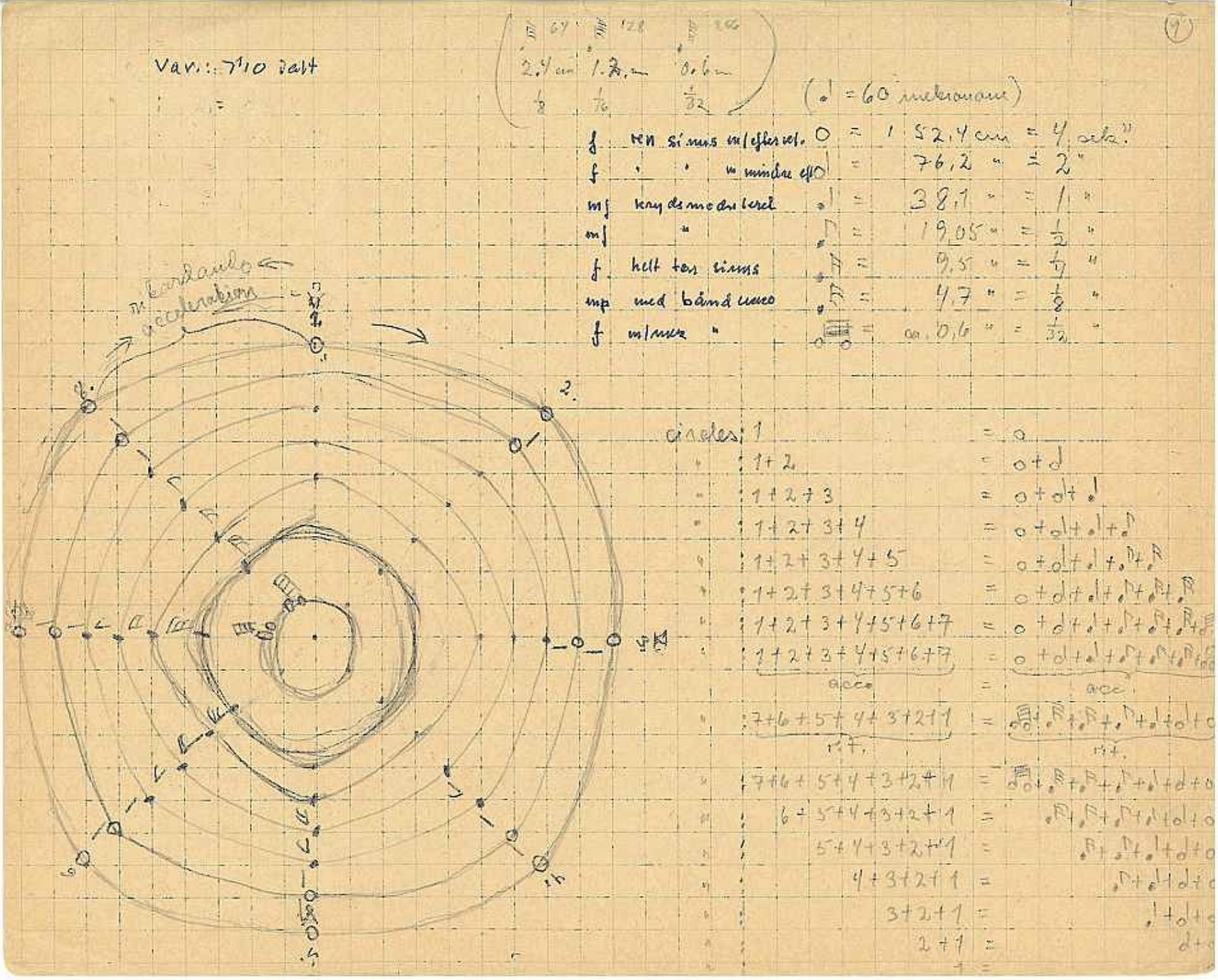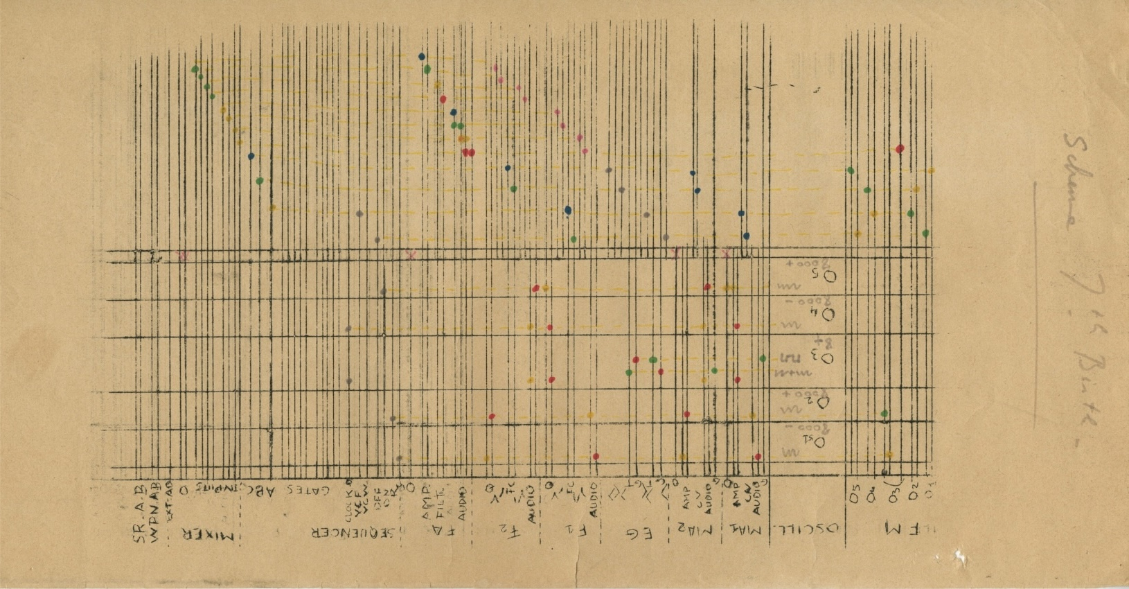 Éliane Radigue’s score for 7th Birth, 1971, one of the first compositions for the ARP 2500. Photo: Fondation A.R.M.A.N. © Éliane Radigue.