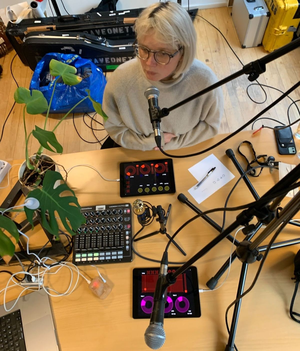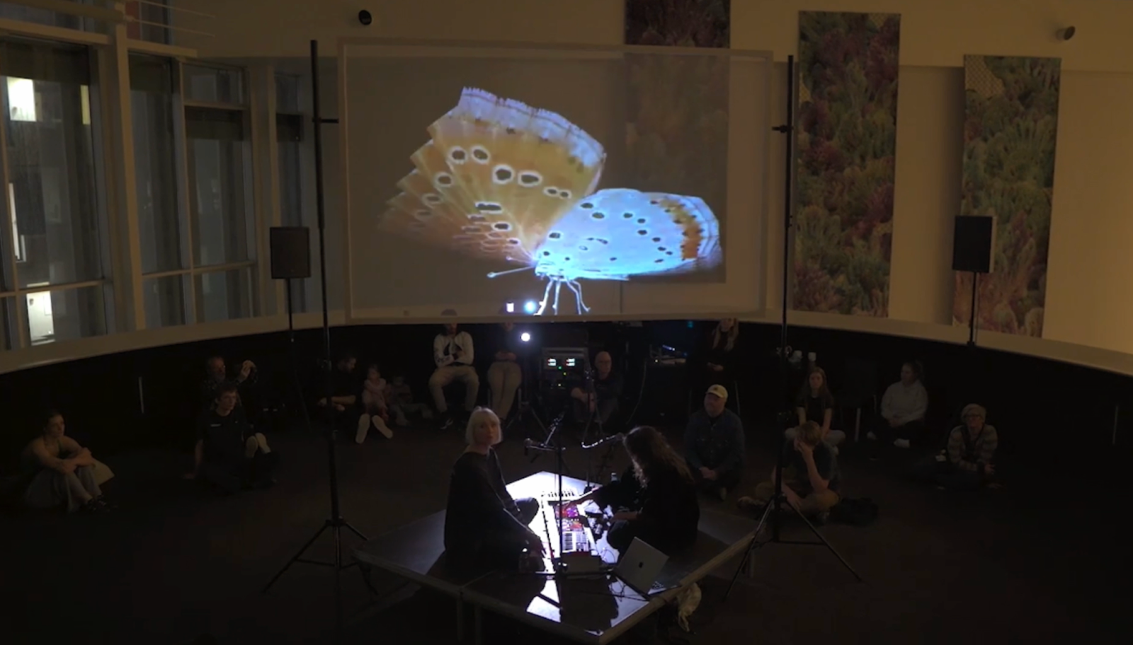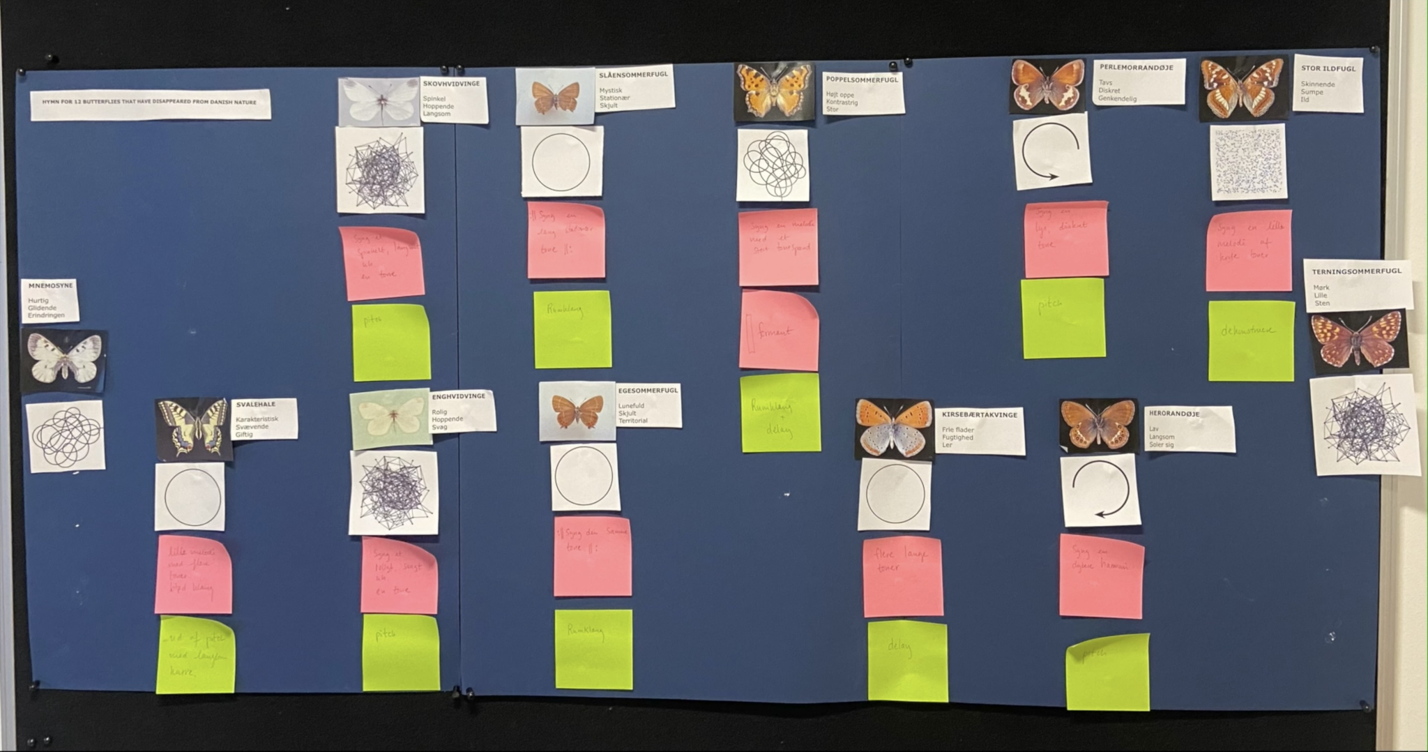 Hymn for 12 Butterflies is an ode to twelve butterflies that have gone extinct from Danish nature. It is an experiment more than an actual song or finished composition. It emerged after our process of reversioning stereo material, and entering a new phase of letting go of songwriting as we knew it and exploring new approaches and methods. In this experiment, we juggled with multiple elements: the improvisational system/instructions, spatial movements and language around those movements, and joint performance/composition methodology, including interface design and playing with spatial agency and chance between human and non-human actors.