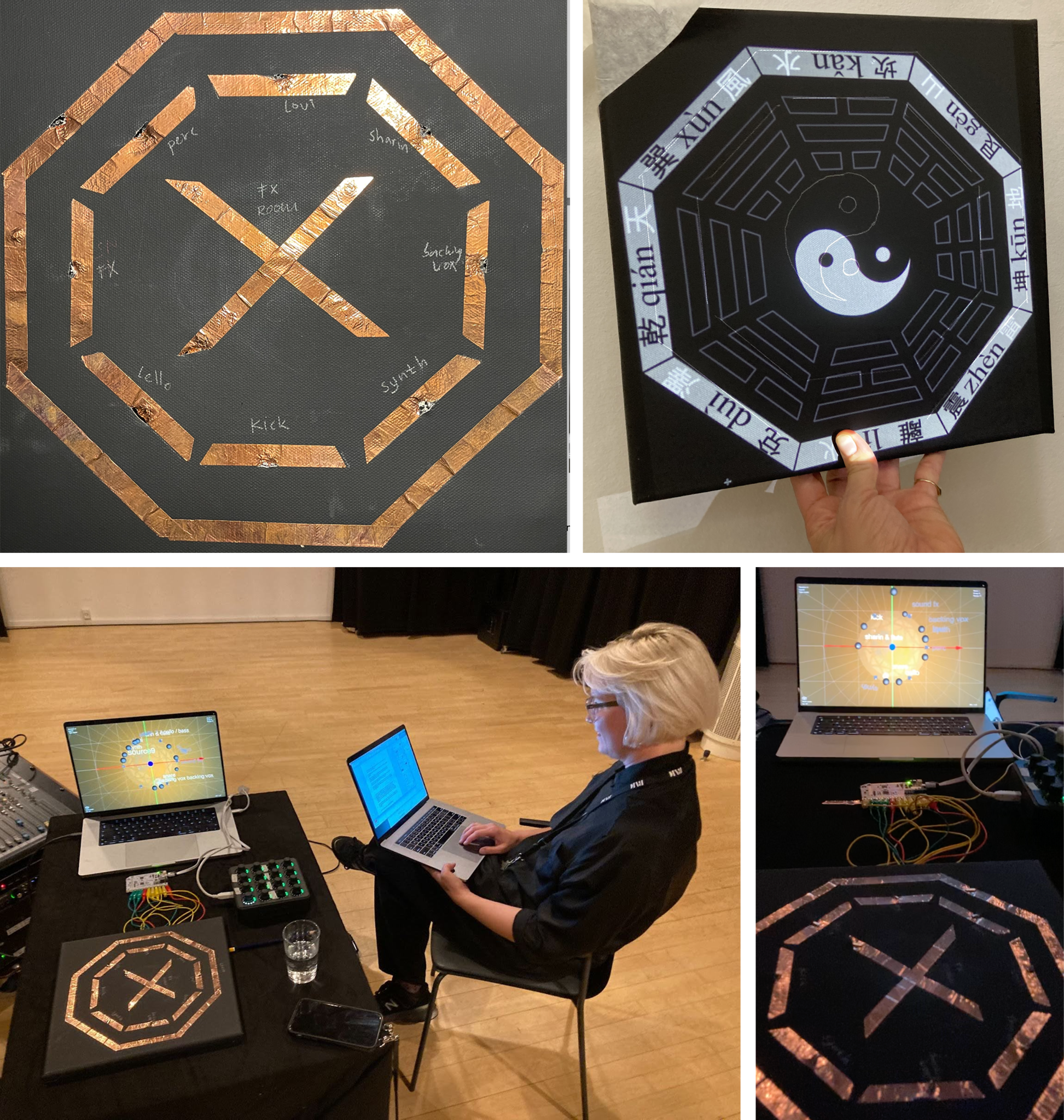 The idea emerged from a desire to challenge the linear structure of traditional music controllers (e.g., keyboards) andinstead, adopt a circular layout rooted in symbolic and spatial logics. Owing to our Chinese heritage, we encountered bagua symbols during childhood and were drawn to their spatial metaphors and visual structure, seeing them as a meaningful foundation for organizing sound in a performance space.
