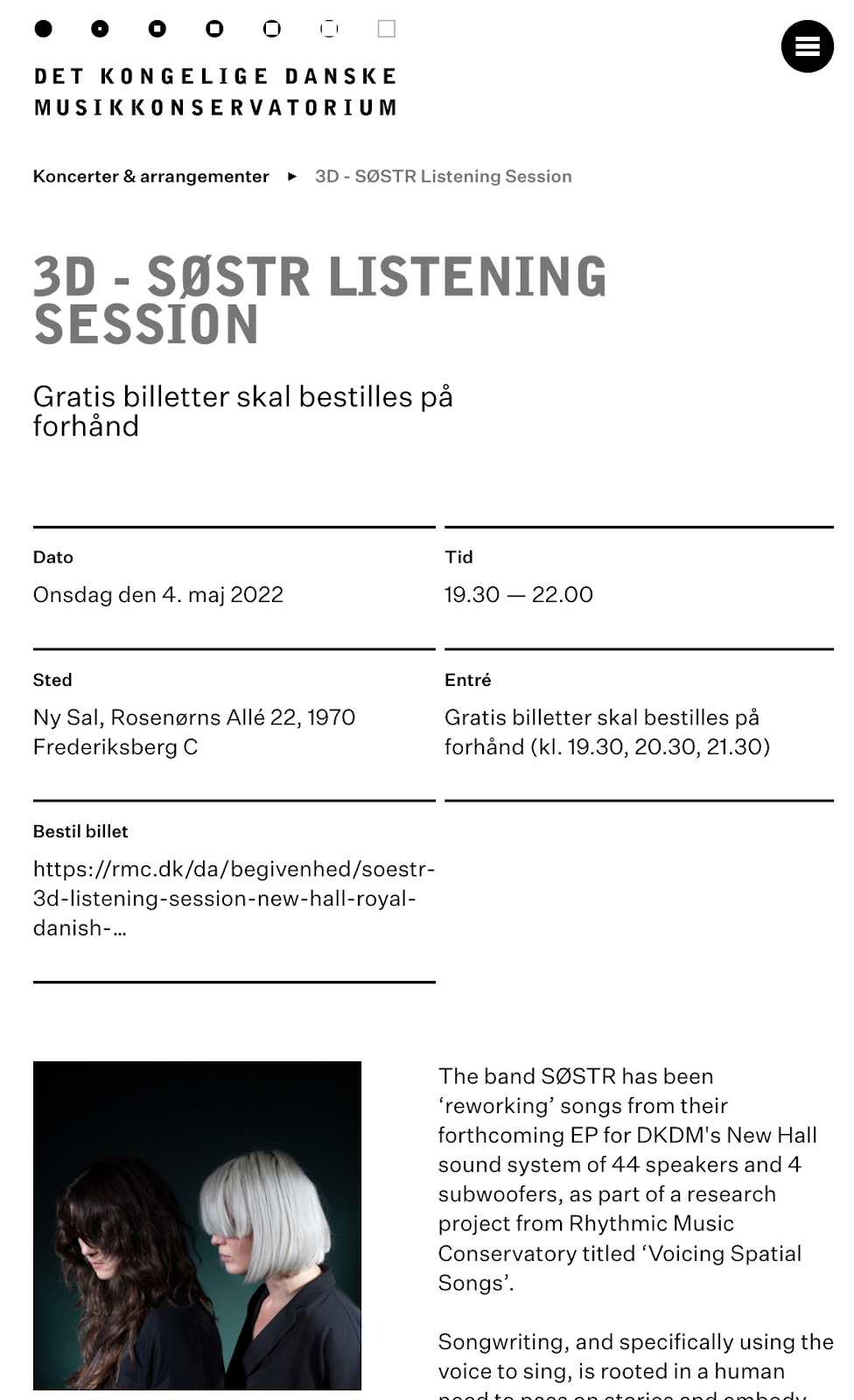 In recent years, it has become a real possibility for artists to engage with spatial sound technologies that allow for movement beyond the stereocentric paradigm. Thus, spatialization has mostly lent itself to avant-garde traditions, electronic music, and sound art. However, the rapid advancements of technologies have called for artists, songwriters, and musicians of all genres to contribute to this development not only by following and fitting into these new formats but also by shaping them through artistic engagements with them. When considering sound in space as a new component in the music creation toolbox, a new dimension is added that provides creative and performative potentials of situating songwriting and music creation within a spatial sound practice. Beyond the literal, what kinds of metaphorical or emotional resonance can emerge from the vibration between various bodies, such as composers, performers, and audiences, as well as bodies of sound, technologies, interfaces, instruments, scene, setting, speakers, aesthetics, and orientations? Voicing Spatial Songs was conducted by avant-pop duo SØSTR, which consists of sisters Louise Lind Foo and Sharin Foo.