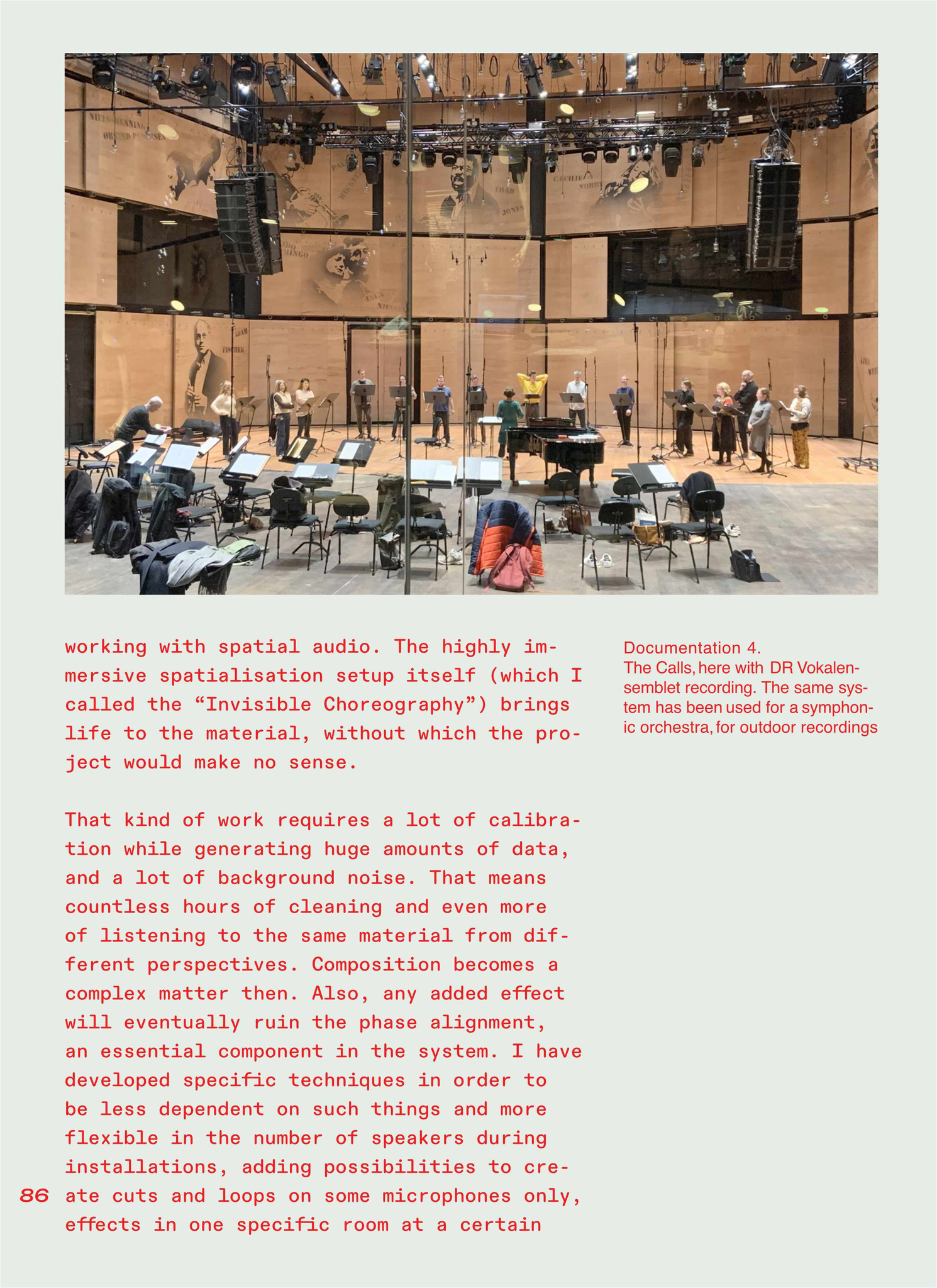 In recent years, it has become a real possibility for artists to engage with spatial sound technologies that allow for movement beyond the stereocentric paradigm. Thus, spatialization has mostly lent itself to avant-garde traditions, electronic music, and sound art. However, the rapid advancements of technologies have called for artists, songwriters, and musicians of all genres to contribute to this development not only by following and fitting into these new formats but also by shaping them through artistic engagements with them. When considering sound in space as a new component in the music creation toolbox, a new dimension is added that provides creative and performative potentials of situating songwriting and music creation within a spatial sound practice. Beyond the literal, what kinds of metaphorical or emotional resonance can emerge from the vibration between various bodies, such as composers, performers, and audiences, as well as bodies of sound, technologies, interfaces, instruments, scene, setting, speakers, aesthetics, and orientations? Voicing Spatial Songs was conducted by avant-pop duo SØSTR, which consists of sisters Louise Lind Foo and Sharin Foo.