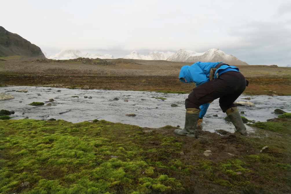 Ja lähestyn tätä arktista kokonaismaisemaa melkolailla ummikkona. Laboratoriossa hiukkasten äärellä ymmärrän, että minun on viritettävä itsestäni näytteenottolaite, eräänlainen kaiken tallentava vastaanotin, johon kerätä kaikki; vedet, lintujen ulosteet, kalojen loiset, tuuli, vuoret, meri, jäätikkö, ikirouta, luonnontiede, eläimet ja ihmiset.