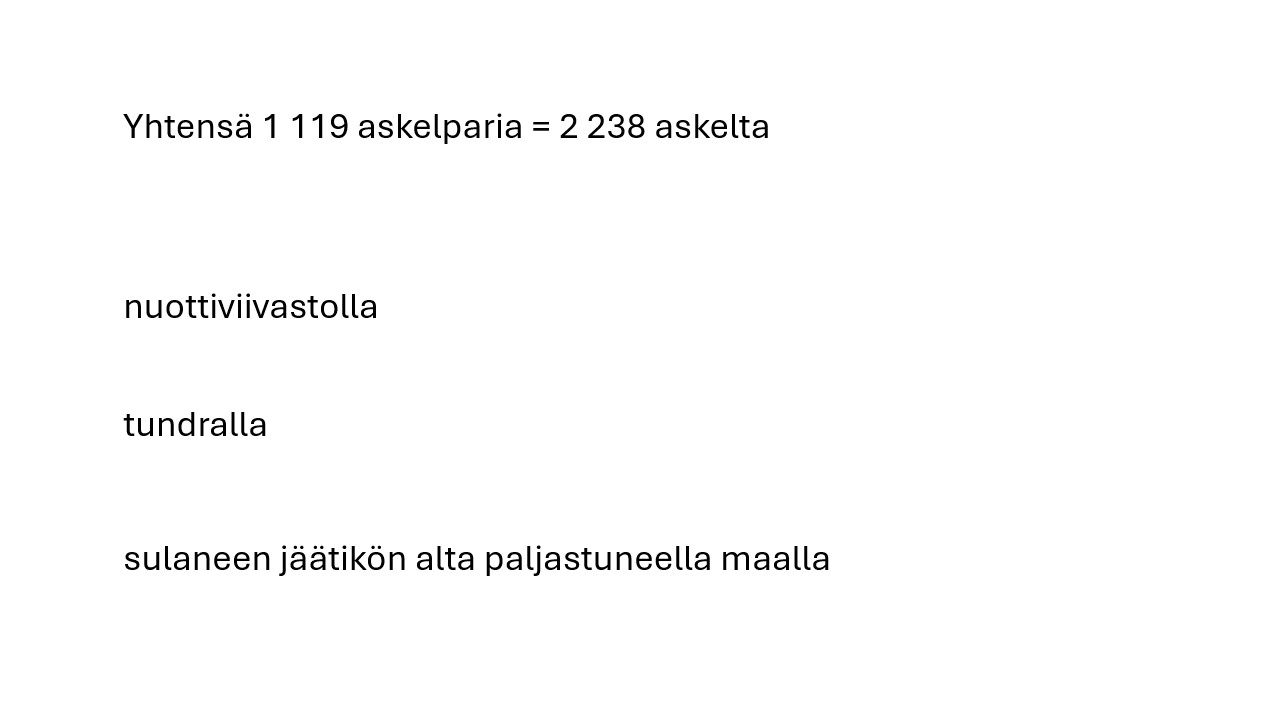Tundra näyttää tasaiselta, mutta ei ole. Pinnan alta törröttää teräviä kiviä. Tämä saattaa hidastaa kulkua.