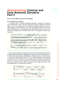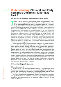 In eighteenth century scores, dynamics were notated almost exclusively in a general way. The dynamics belonging to the melancholy or passionate development of a musical phrase or the minimal dynamical differences between a dissonant and a consonant in (for instance) a Mozart Adagio or a Chopin Nocturne are so subtle that it is even better to not notate anything. The deepest utterances of both the composer's and the pianist's soul cannot be caught in any notation. However, in my opinion many of the notated dynamical indications are not fully understood or mis-interpreted. At the same time, implied dynamics can be found (while today often not realized) in virtually every musical phrase. In this research project I have investigated classical dynamics, focusing on the local function of forte and piano, on crescendos and diminuendos, the influence of harmony, the dissonance-consonance resolution, the relative meaning of ff, the dynamics of high notes, and other factors, such as the density of the notation, the direction of the melody, the register of the phrase and the character of the work. This research is part of a larger research project on the nature of the classical language, addressing dynamics, rubato and phrasing.